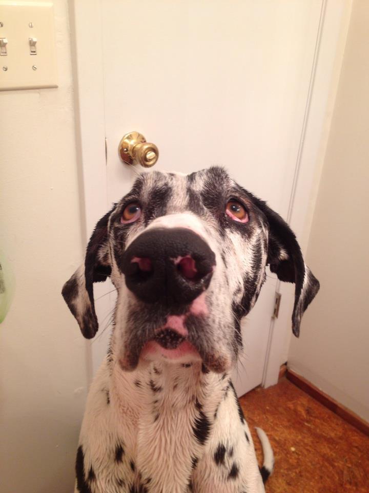 Hi. My name is Bella (mom sometimes calls me “Beelzebub” when I am bad). I was not named after the girl from the movie, but people always ask my mom that and she gets mad. I am a Great Dane but my mom says that I mostly act like a cat. It’s a good thing too, since mom has so many cats.