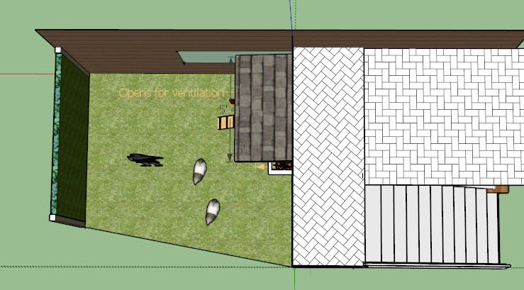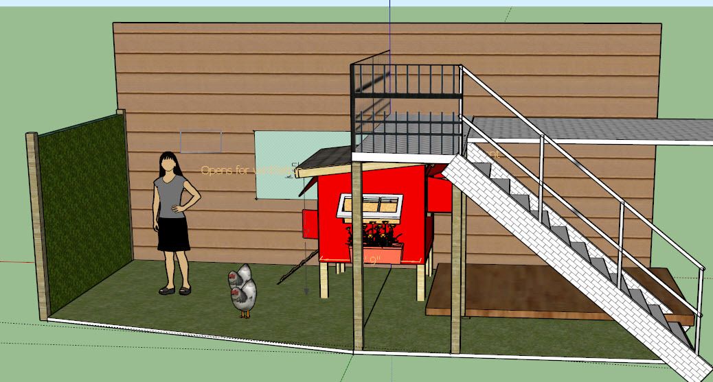 Also, so, I threw something together for a basis in sketchup. Turns out, the total area for running around (including under the coop), will be approx. 164 sqft.
