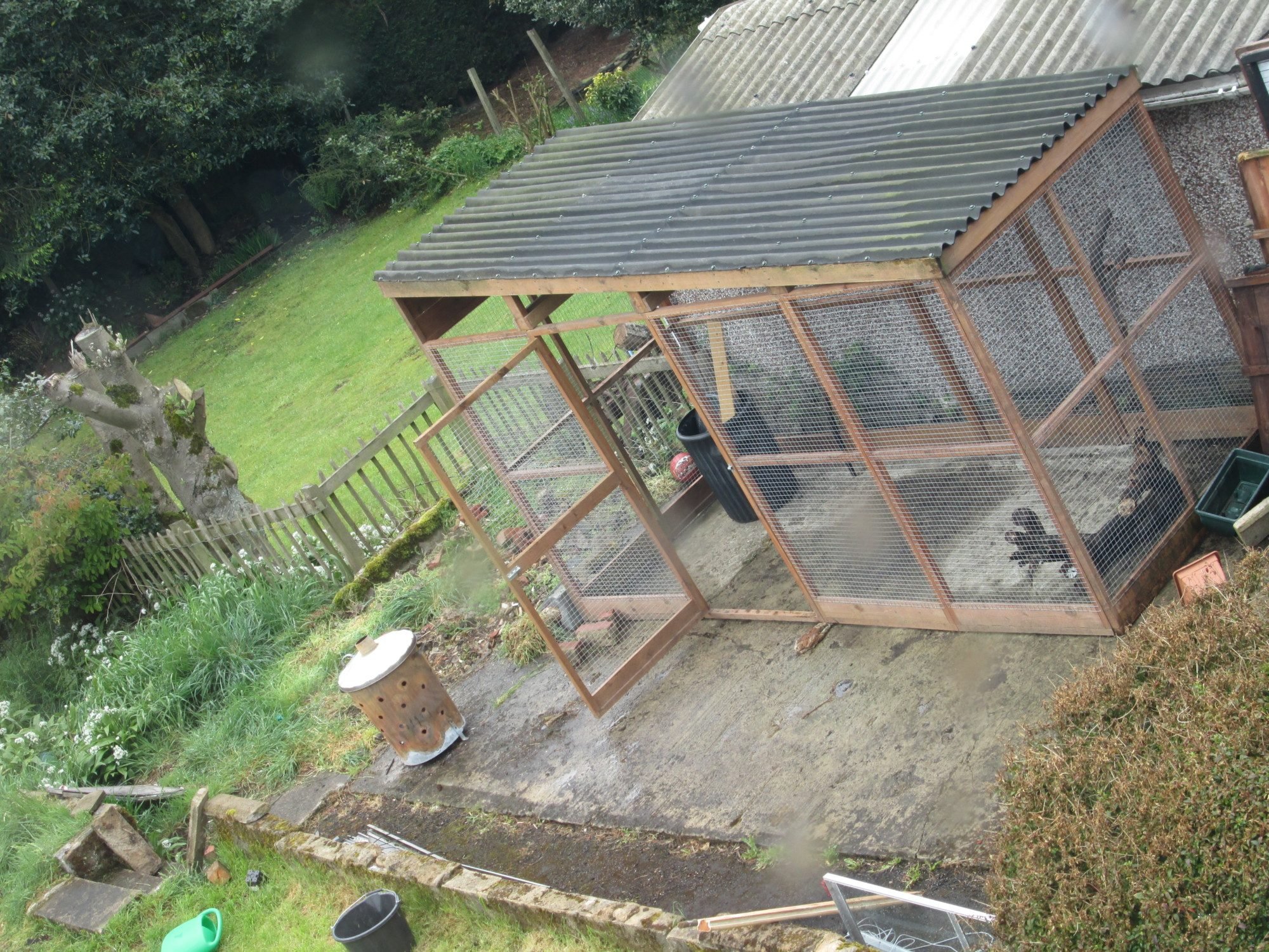 8'x6' shed on the area to the left, which would be partitioned so that 4-5' would be coop and the other 3-4' would be food storage, egg collection, etc. Would be expensive because I'd have to source a shed, very possibly a new one as it would need to be one with the door on the 8' side not the 6' side, and also sort out that big heap of crap/weeds (which is largely bricks and other hardcore which the previous owners couldn't be bothered getting rid of and then a bunch of grass and weeds has grown over it) before I could put the shed up, and I'd probably need a concrete base. Also, it would mean that that bit wouldn't be able to be made into turf/dirt/scratching area which I'm really keen to have considering that there's more than a fair bit of concrete.