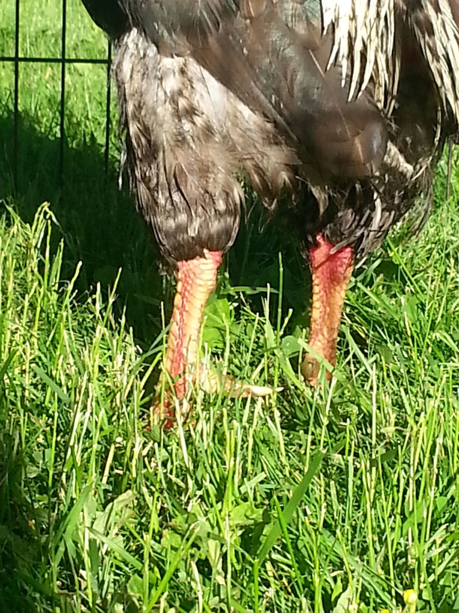 I'm a big fan of heritage breeds. We had Plymouth Barred Rocks when I was little and I have a Golden Spangled Hamburg and had, until a recent break in by a couple of stray dogs, a beautiful Silver Laced Wyandotte. She had such personality (as does my Hamburg) and my children and I were heartbroken when we lost her. I don't raise for meat, just eggs and gorgeous looking pest control. I wasn't even keen on having another rooster; my last one was awful to my girls but that was a cockerel and this one is far more mature and very sweet. His last keepers had him for 2 years and he was fully mature when they got him so he's at least 3 years.