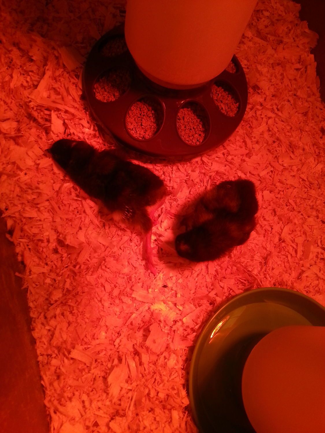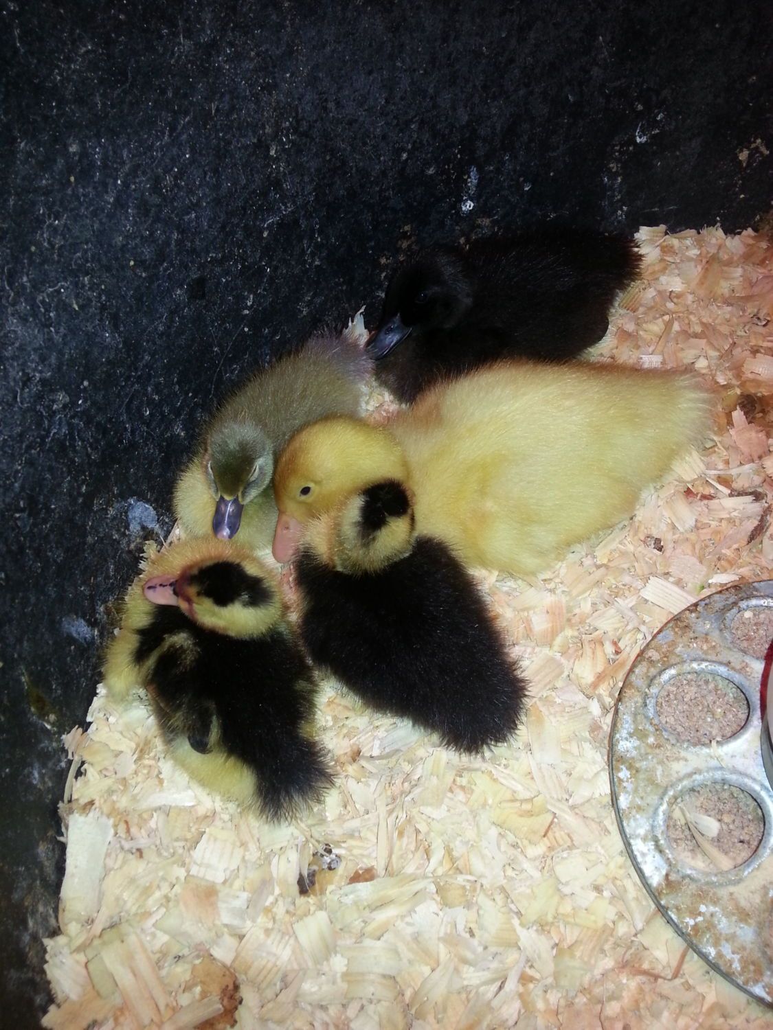 I put the ducks in with the Pekin and Black runner and they're getting along great even though they're a week apart! As soon as i put the chicks in their brooder they went right to sleep, they seemed a little worn out from their trip.