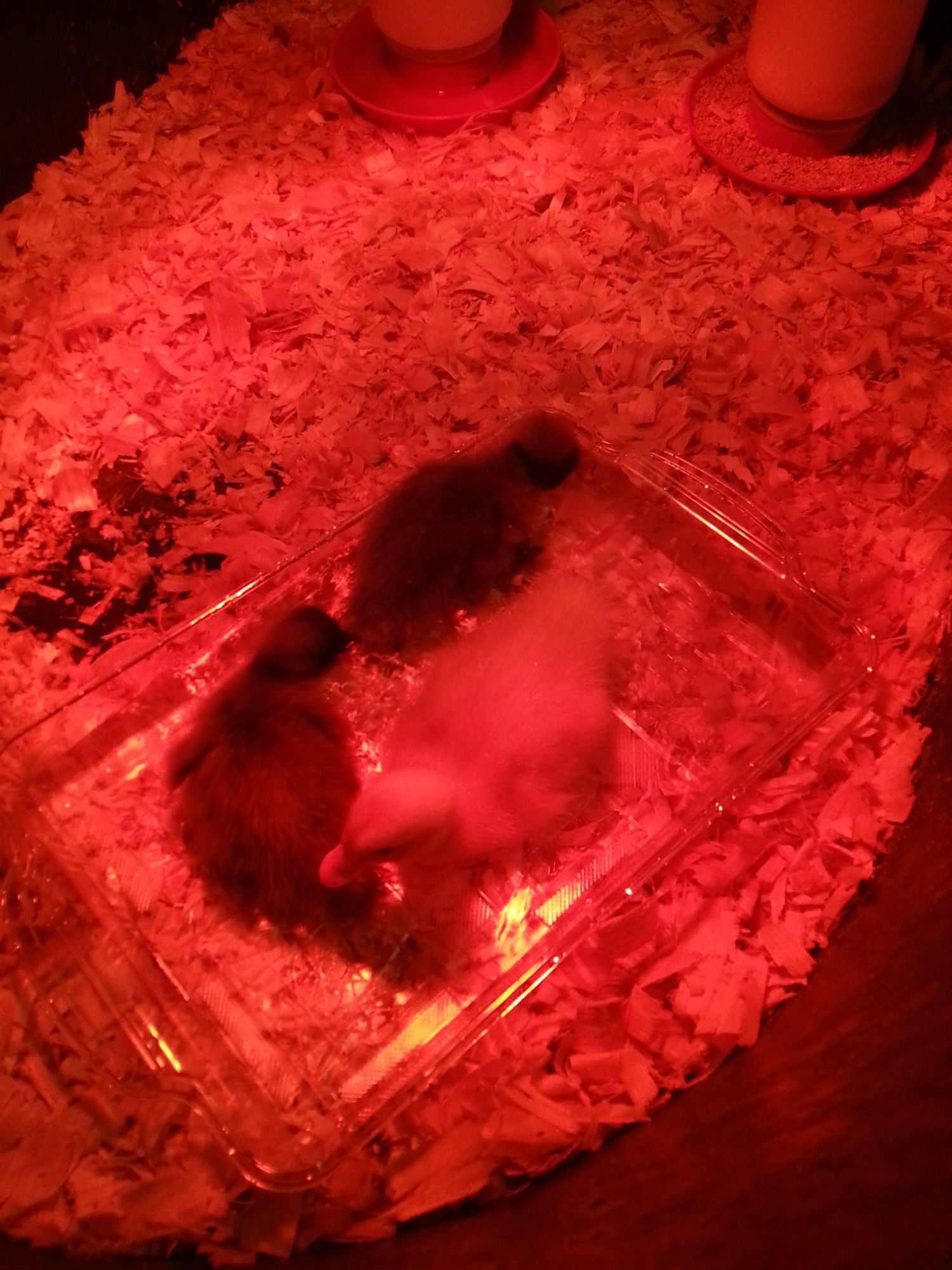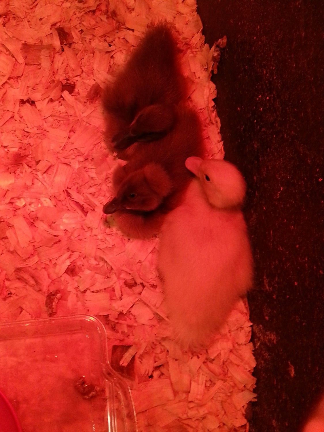 They sure do grow fast don't they. I hope you have them on Niacin or Brewers yeast for their legs especially for the Pekin. Such precious lil ones, has Pearl met them yet?