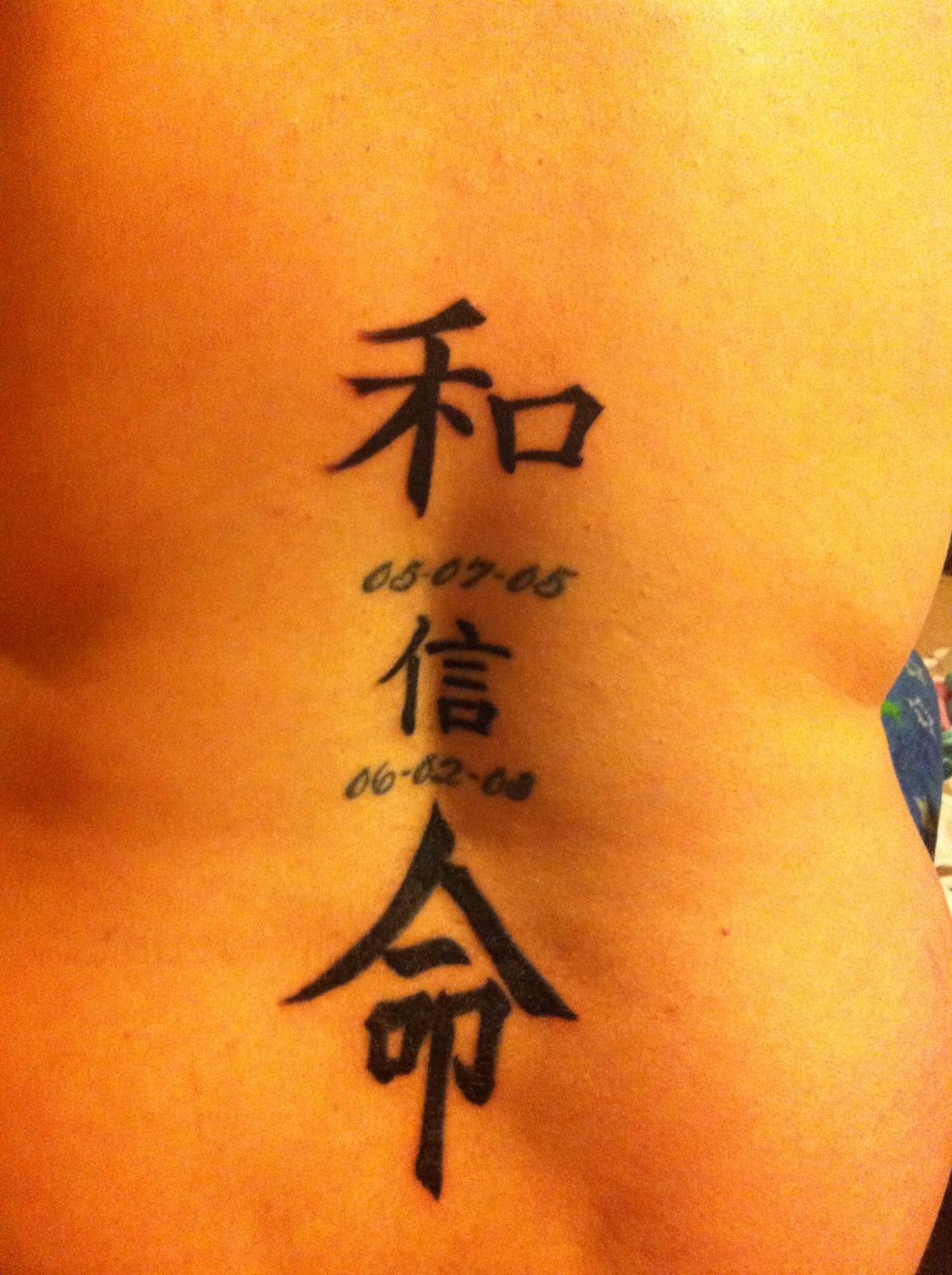 its a work in progress im going to cover up the birthdates with bamboo and put a bonsi cherry blossom tree like what SM had posted behind it from sholder to opposit hip (cant get that last one until i get to my ideal weight i have 60 pounds to lose