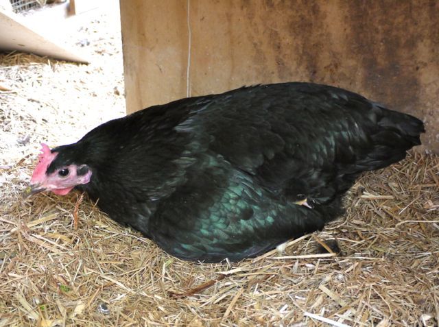 Here is my new ducky, The hen is doing a good job. She hasn't taken it to the food and water yet but I;d expect that sometime today. You can see its head poking out under her wing. It's black - meaning the duck who I thought was the mum is not the mum (mum = mom).