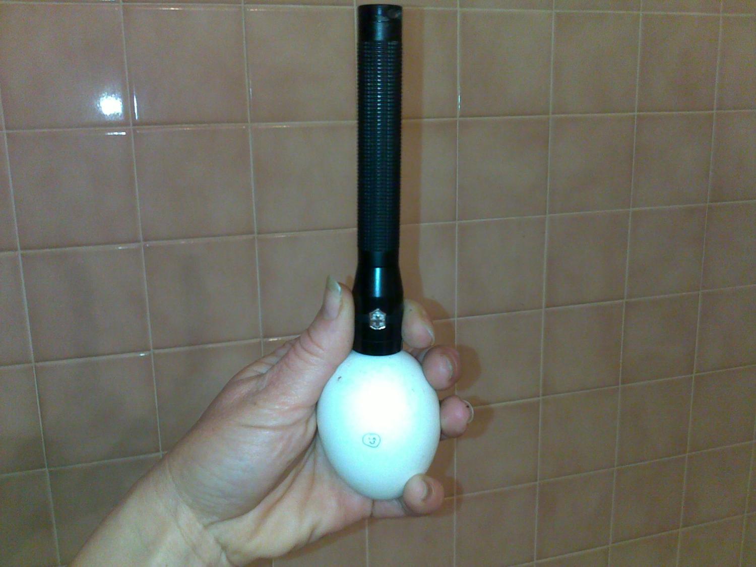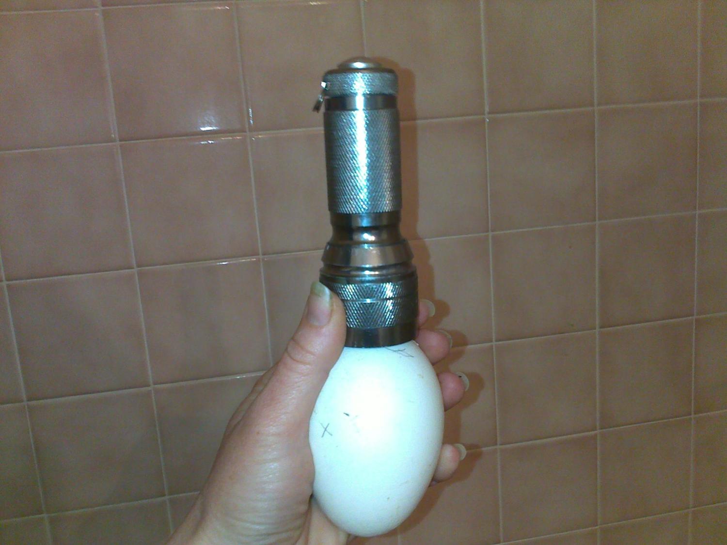 QJ, try and find a strong narrow fflashlight to do your candling from the top. Try and NOt candle every darn day too. LoL, more risk of dropping the eggs. If you hold it at the top you will see into the egg better. I know Pete shows eggs with the light behind, but has a great high powered light too.