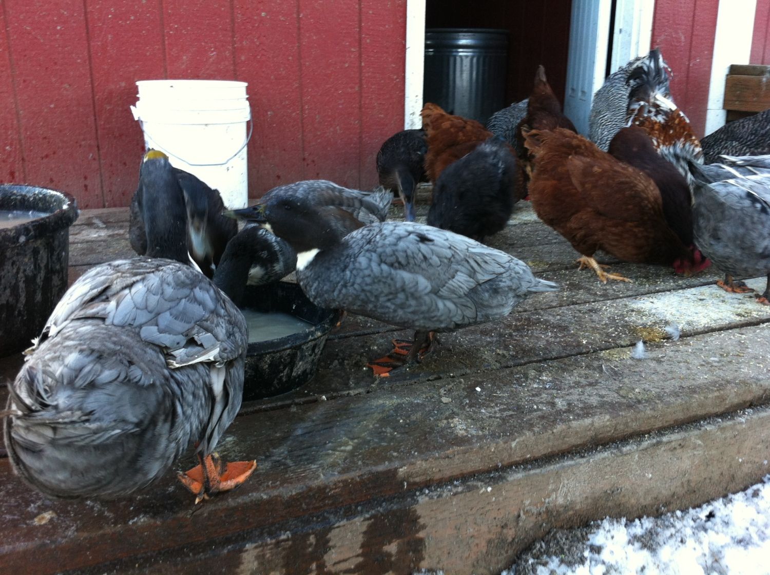 Julie, what kind of goslings did you get again? Because keeping our African goslings and ducklings together lasted for less than 24 hours. Ah well.