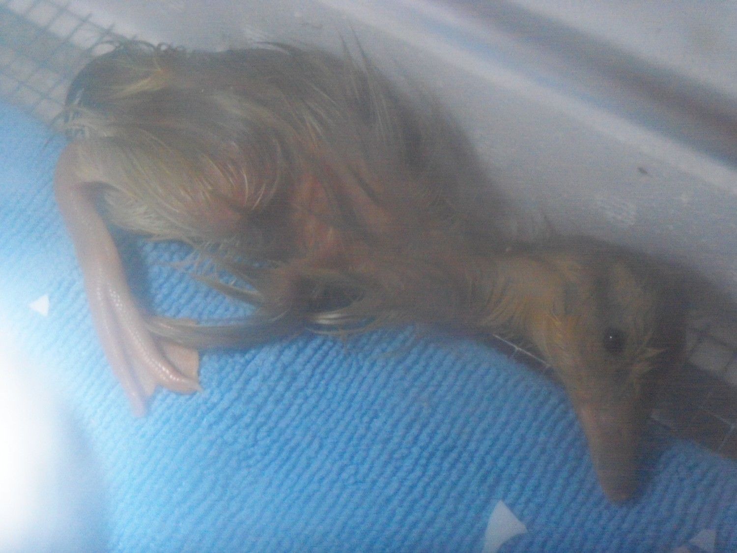 So I went to give the babies their morning treat.. and noticed one gosling kept trying to crawl into my hand when tossing lettuce out. I said to hubby, hm.... there's a gosling that keeps trying to get me to pick it up. I wonder if you have anything to do with this? He gives me a sheepish grin and says, yeah, I had him in my lap watching tv last night after you went to sleep.