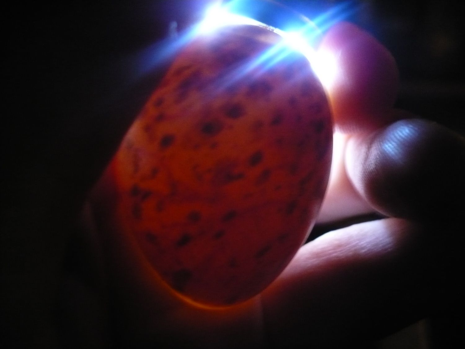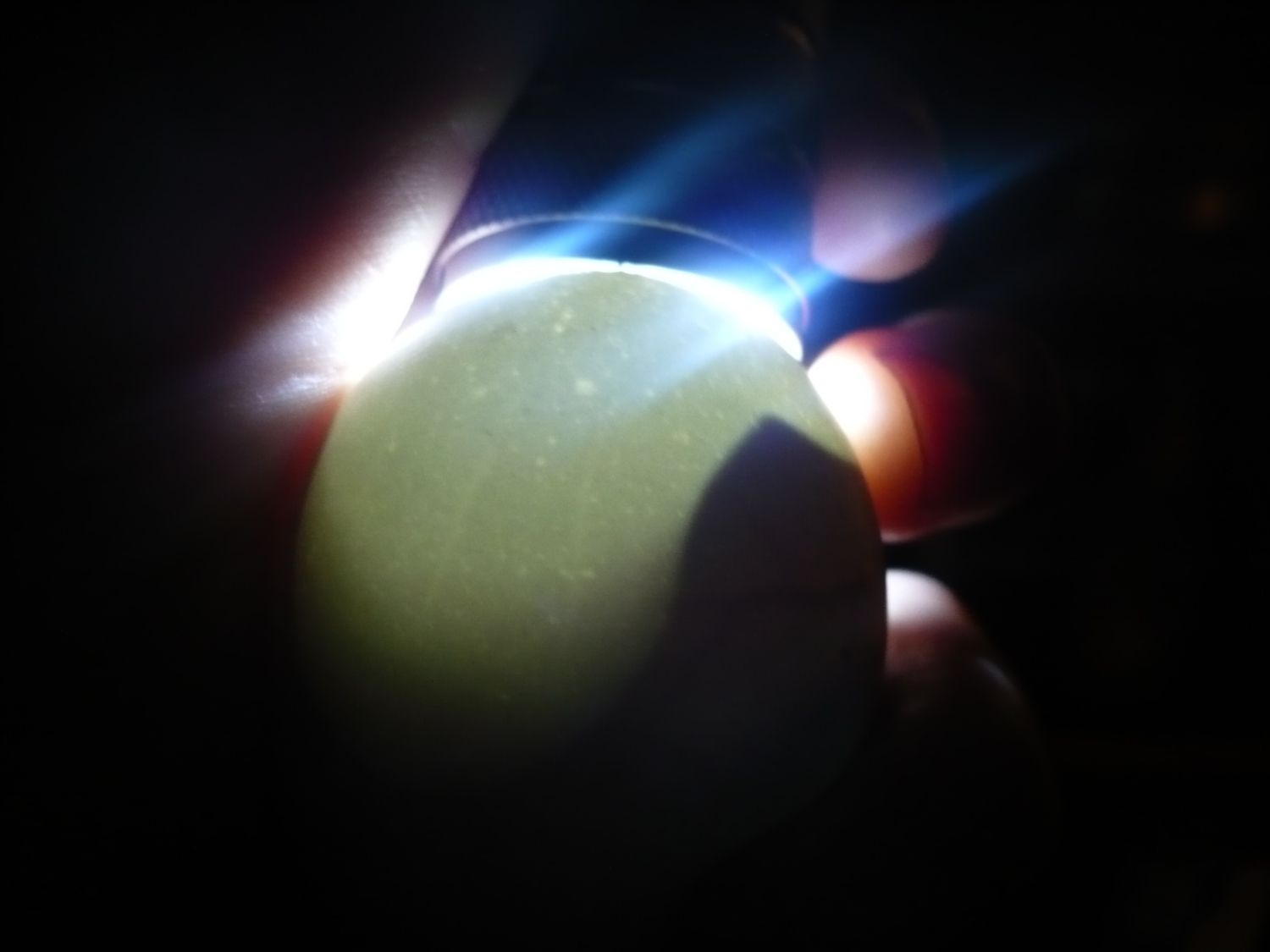 When I get home I'll take a photo of my candling torch. It has a piece of soft cylindrical foam around it that makes you can create a soft seal against the egg. I got the cylindrical foam at a hardware supply shop - it's stuff you put around copper water pipes. Got to get the right size but it fits around the end of an LED torch like the one you are using, Julie. Makes candling easier as all the light goes into the egg, rather than shining round the outside.