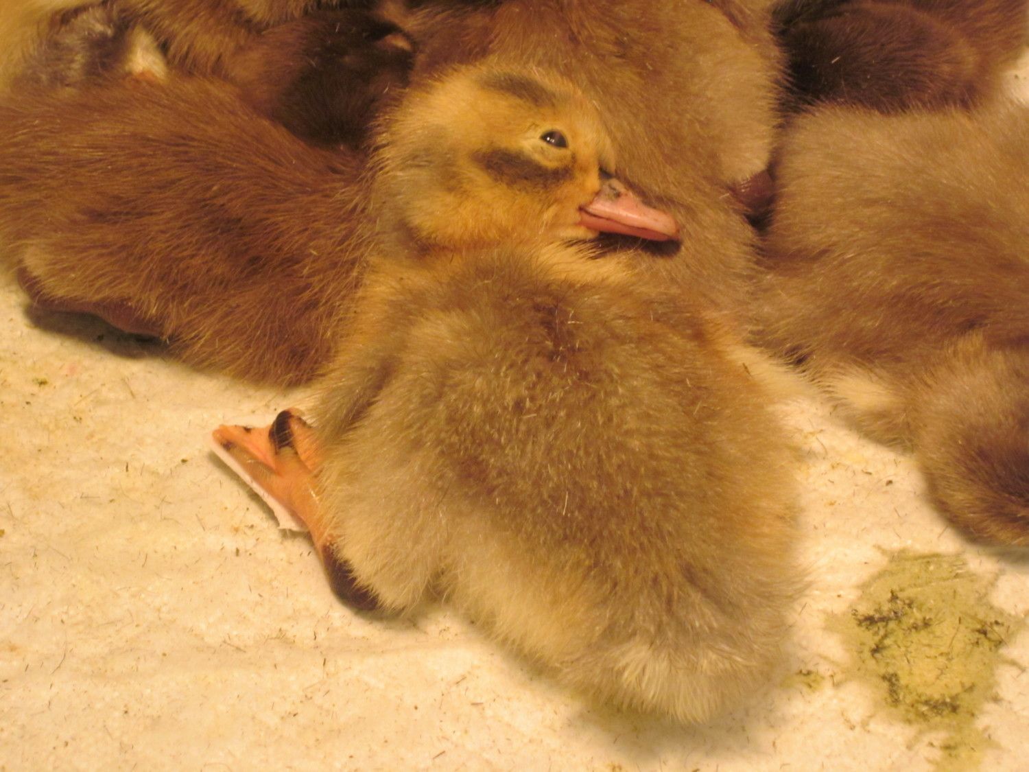 It hatched this afternoon. I had to get creative. Time to replenish the ducky first aid kit. All I have left is vetwrap and sav-a-chick.How long ago did it hatch? It may just need a little time? You can use pretty much any kind of tape, really. Kevin used a bandaid the other day.
