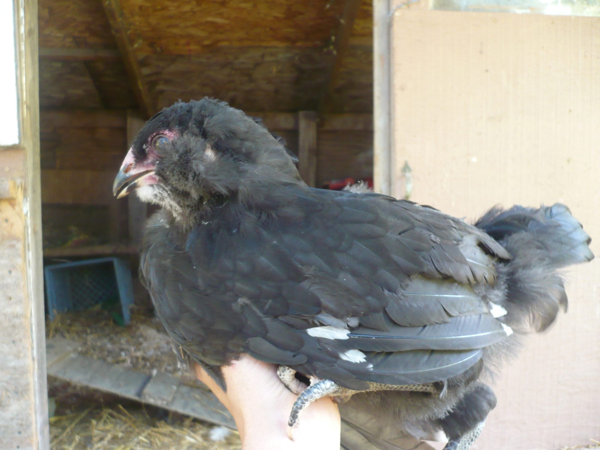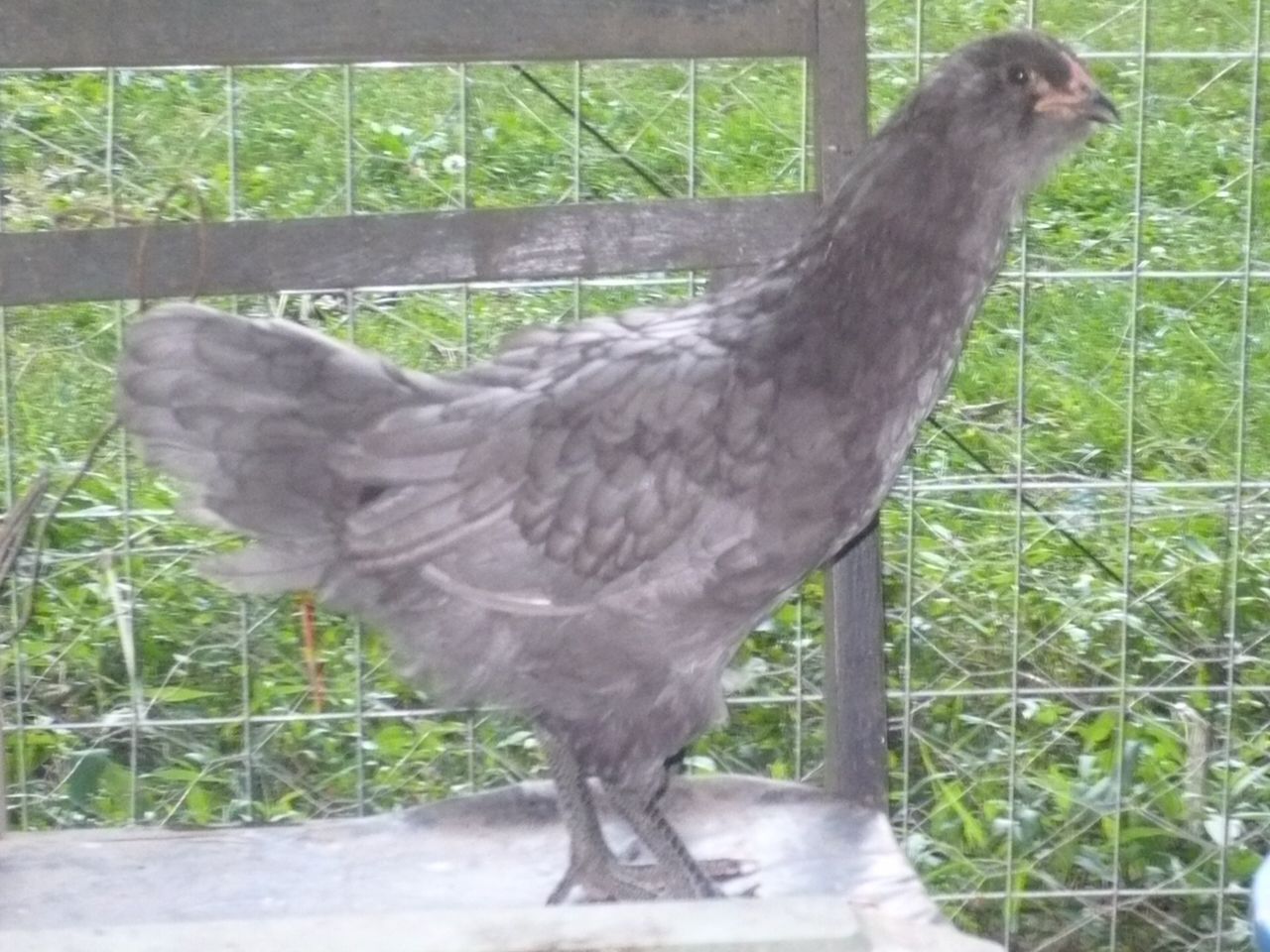 does that trick just work for ee's or all chickens?Julie, unless blue starts leaking gold or red/orange on its neck and shoulders and or saddle area then its another hen. We have a blue EE roo, was very slow to grow and mature, he is now getting gold hackle and saddle feathers. We also have all blue hens both dark and light in color. Take a sheet of printer paper, hold under some of the hackle and saddle feathers to see if they are round (hen) or pointy (roo). makes it much easier on an EE. Oh and the first one (black with white beard) if its from ours birds it could be an OE (olive egger) chick from an EE hen and one of our sons BCM roos.