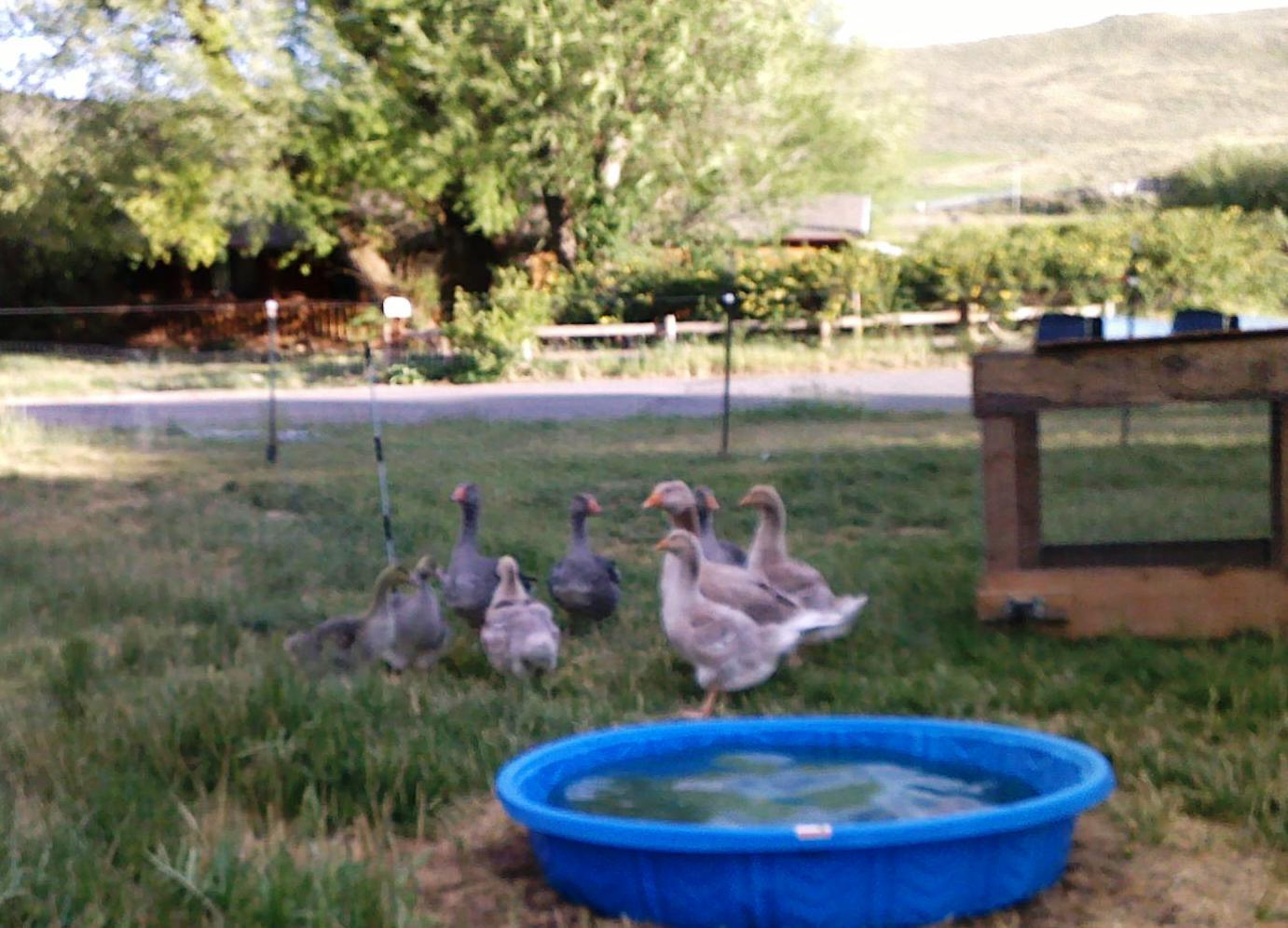 I'll get one tomarrow. In fact, I keep wishing every evening that I had my camera on the walks. The babies are sooo cute! A fine mixed group of ducks and goslings chasing me around the yard is a kodak moment. Oh, and I feel like a goose mama.I love that if I squat down, all but the ducks run up to me for their petting.![]()