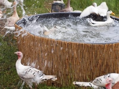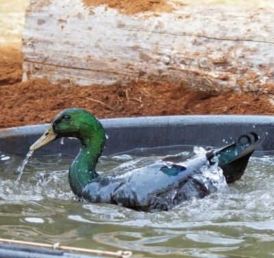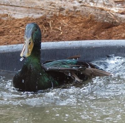 Beatrice had an awesome night, I let her graze for about 20 minutes when I got home yesterday on some very fine grass, then she ran everyone else out the pool and had it to herself for about 30 minutes. She got out of the pool and began preening in the late afternoon sunlight. She did a few wing flaps. I cleaned her living accomodations and put her up. She took a dim view of that. I fed her some well watered down feed and refreshed her water bowl. Then I took care of the rest of the critters. When I checked on her before bed, she had normal, fresh green grass poop in several places in her enclosure. Hallelujah! She had eaten some of her food. She was "talking" to me non stop. I also discovered in one poop spot a brown, rubbery, piece of either paper or bedding. I couldn't tell which. I even retreived it and washed it off. Don't laugh! Its not that funny! I couldn't tell for sure what it was but it looked kinda like a big corn flake. I decided not to do any taste test! I went to bed and slept like a baby for the first time since this started. This morning she had finished her food up and was begging to get out. Appropriate poop was much in evidence!!! I of course, had to come to work. I am so happy that she made it. This afternoon, I am going to let her stay out longer and put her up one more night and tomorrow I will try to put her back with her flock. She is one tough little cookie! She is smaller now than they are and her skin is hanging very loosely but I bet she catches right up. She is still telling them that she is the BOSS! If ya'll want me to I'll try to type up a summary of this event and how I treated her (with appropriate credit to all my BYC friends who gave me such sound advice along the way) so we will have it for reference somewhere in case someone else needs it. It may not be neccesary but you never know.