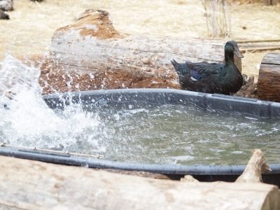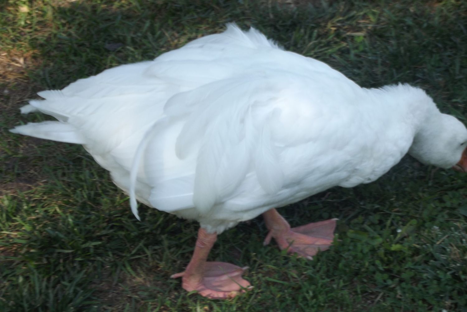 We have another successful merger of goslings. We put Platinum (injured buff girl) with the two grey boys out with Barley & Co. All that is left inside is Spirit and her bestest girlfriend Ember. They seem to enjoy the space and are not stressing about the others gone. I caught Spirit stretching. First a full extension with wings flapping and then standing one-legged on knob, stretching out other leg. Her balance is especially good today.![]()