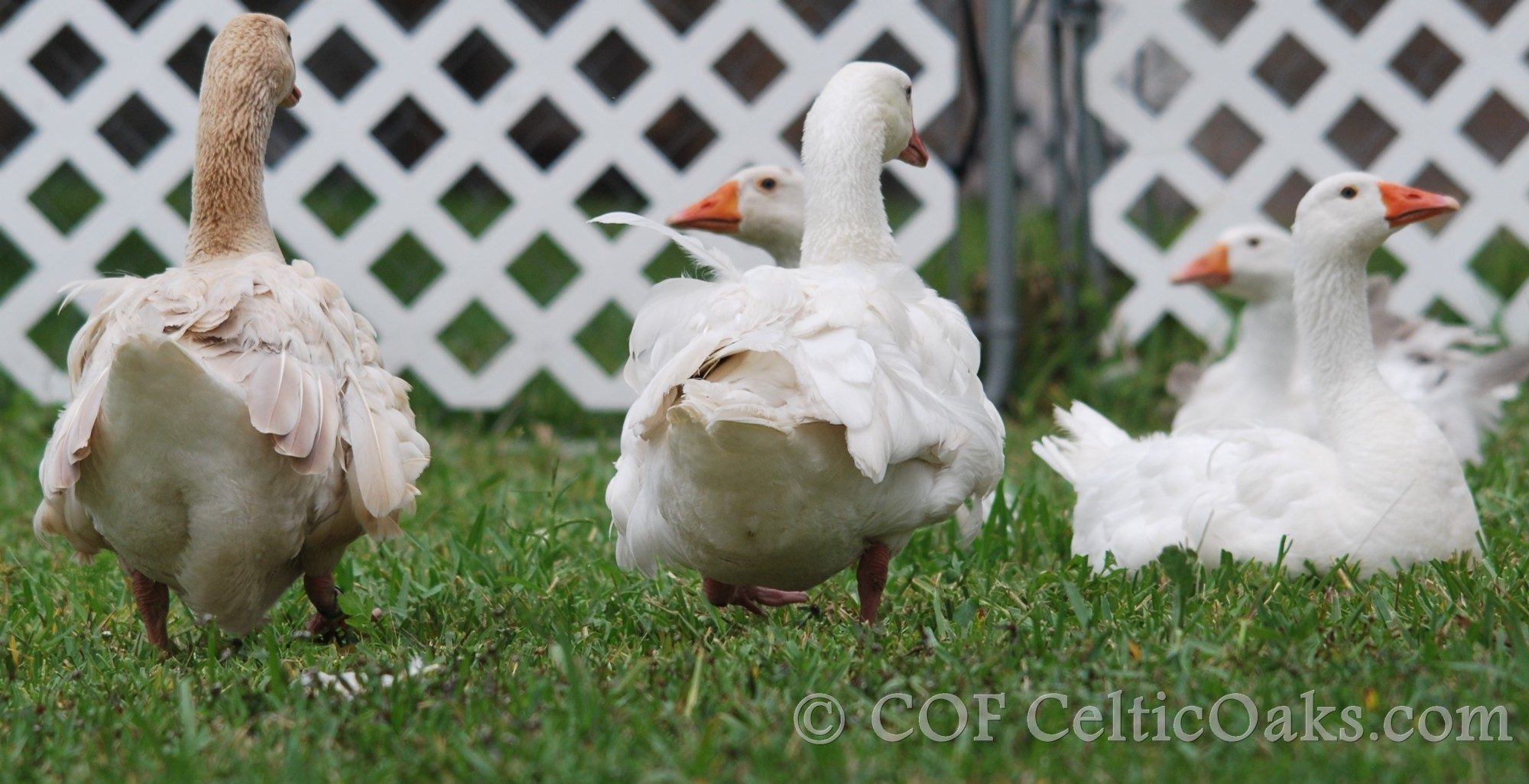and the butt head crew, always giving me their backsides. Peaches left (Lilac Sebbie goose) and Dahlilia right (White Sebbie goose)