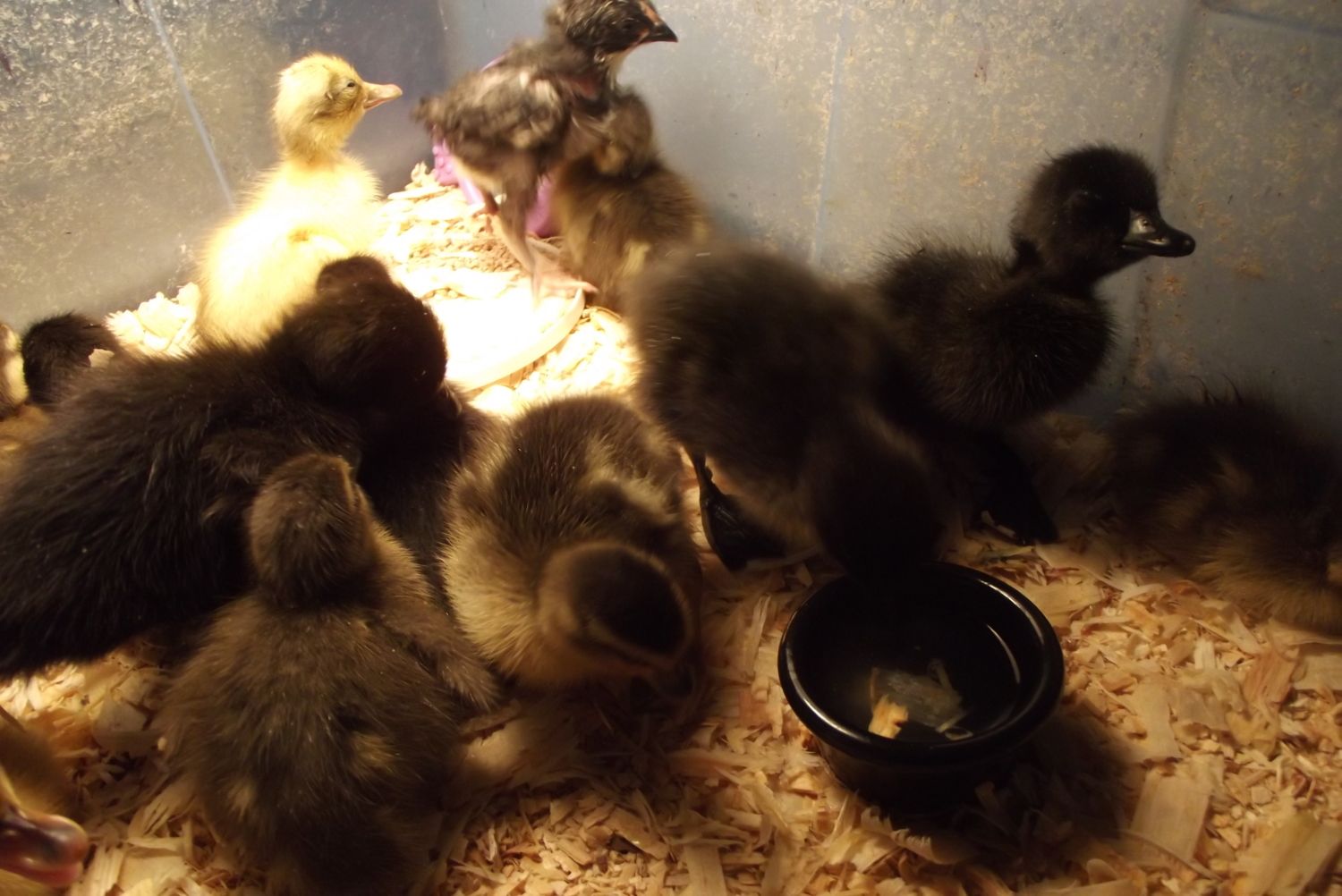 You can see my one chicken that hatched in the background. Who now thinks he's a duck.