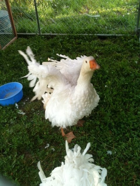 Adorable. I'm starting to want a bad hair day curly goose. I didn't like the look of them really at first, but after seeing all the pics on here I'm starting to think they are pretty birds.