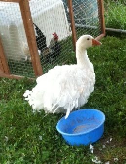 Beautiful geese Christine, I went today and picked up my Toulouse girl, she is a bit under weight and was in need of a bath but here she is,