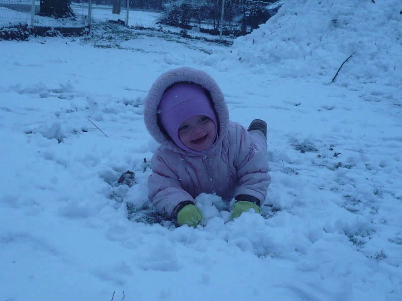My youngest was not impressed with the snow last time, but today when I took her out there she threw herself down in it and started rolling around and laughing. Then she ate a bunch, and I eventually had to drag her inside after she turned into a soggy muddy mess.