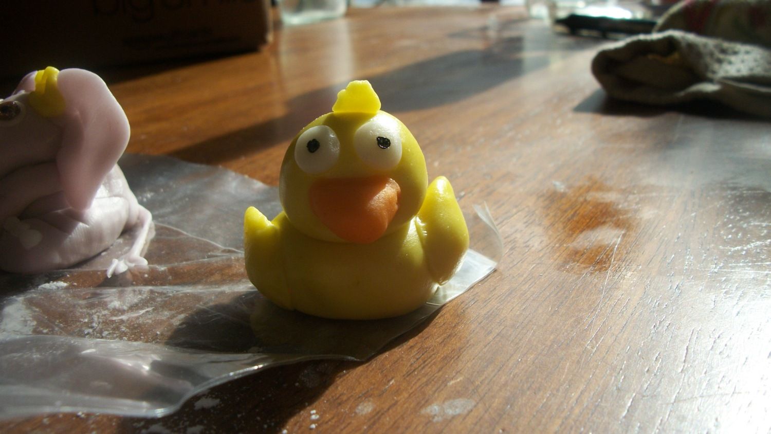 fondant ducky i made for my little niece or nephews gender reveal cake