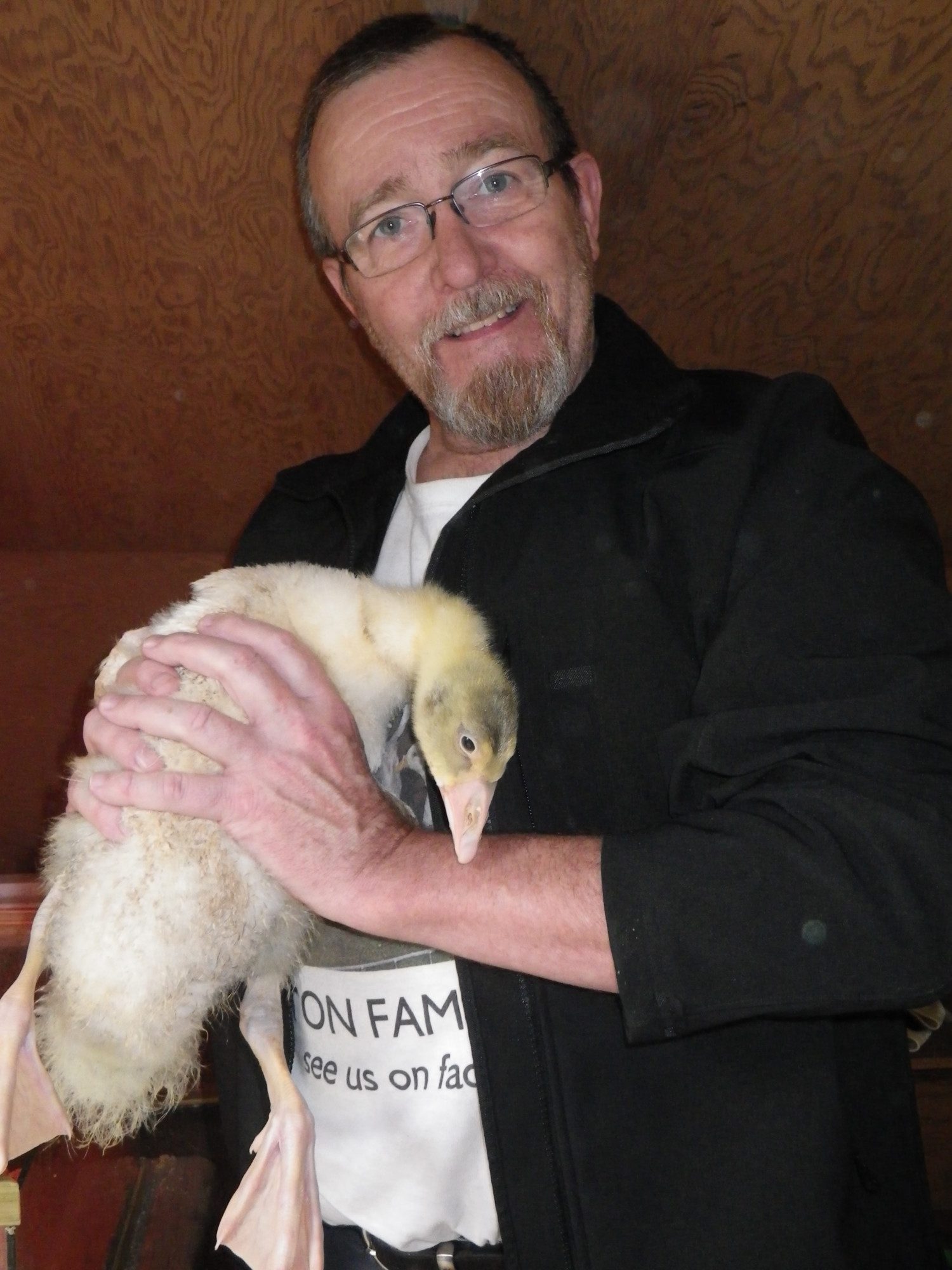 Hubs might be cranky if he finds out, but here he is with our fist hatched gosling this season...
