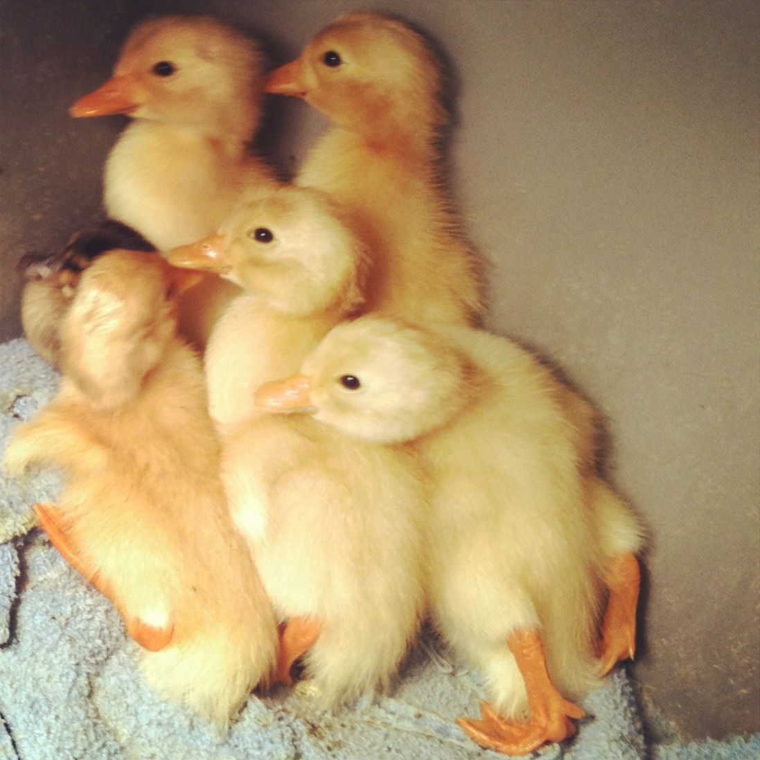 Congrats on your new babies, this is our first time hatching ducks and your yellow ones look just like our Aylesburys. How long did you manage to resist b4 going in for a cuddle?