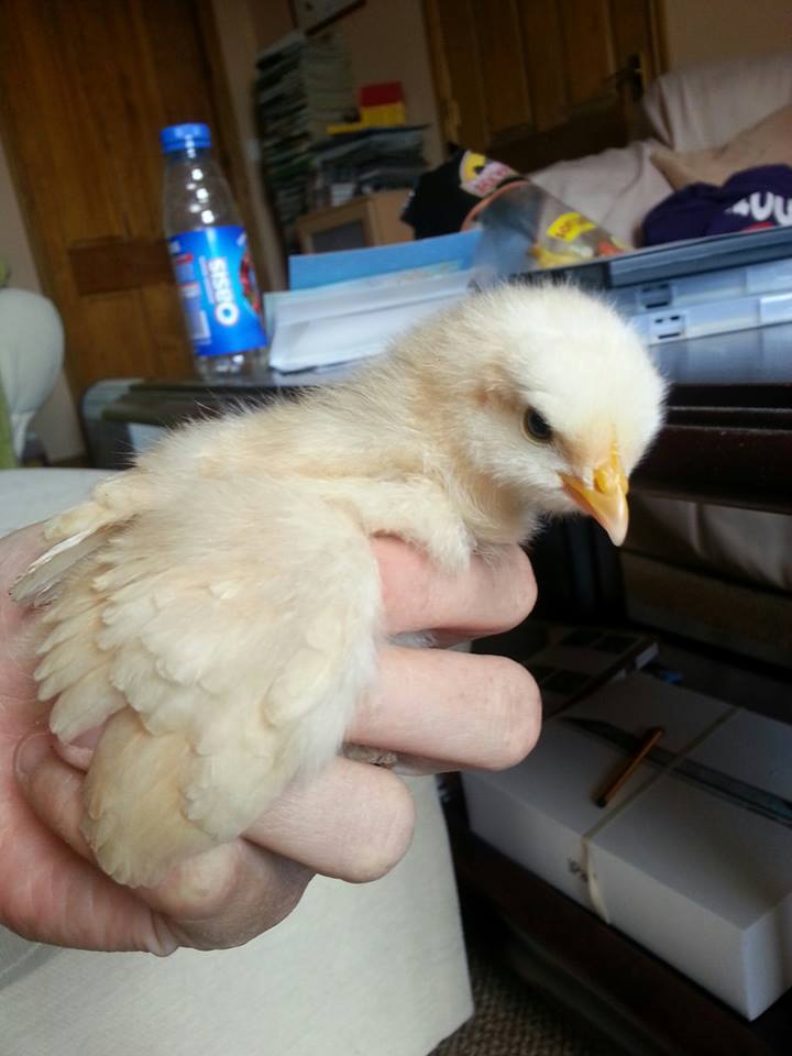 chick 1. hatched from the white egg at the top, my favorite out of the lot