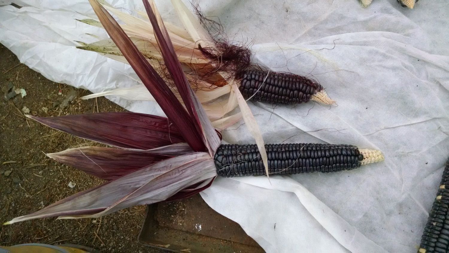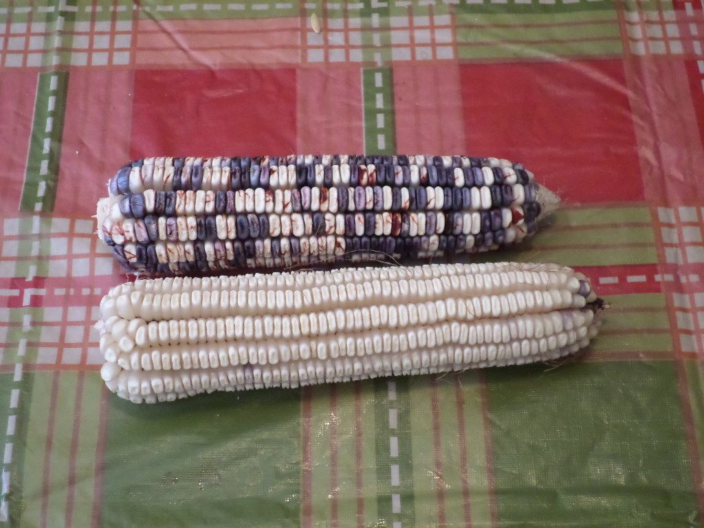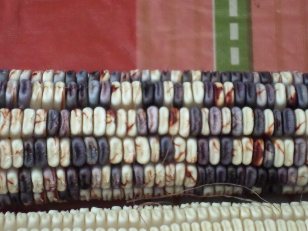 Aside from the mixture of blue and white kernels, notice that the white kernels have red swirls in them. I can't wait to make cornmeal out of them.