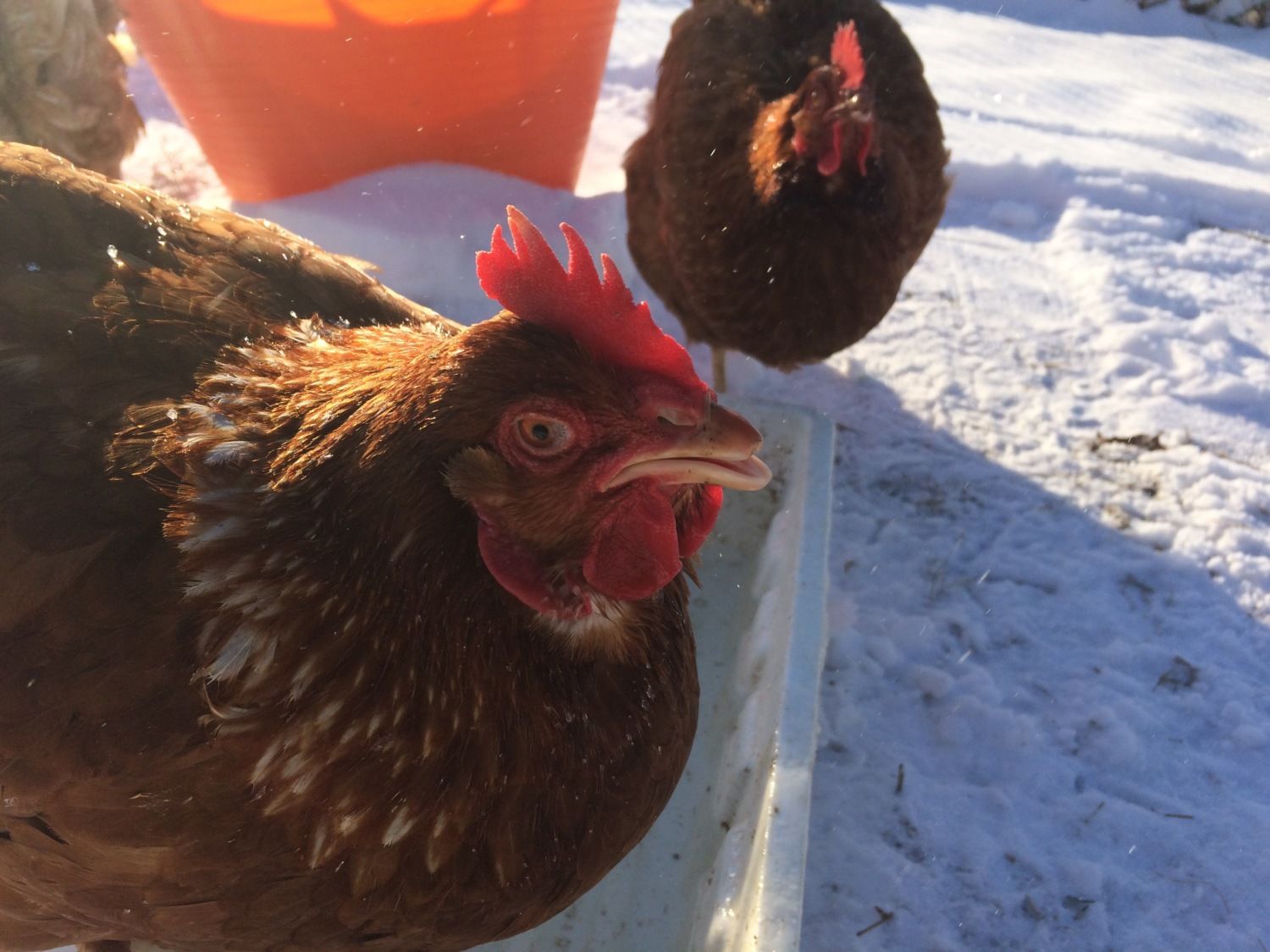 Hello, I noticed one of my 1 year old hens acting funny yesterday. When I put out some water several hens ran up and drank, and this one perched herself on the bowl and started to breathe funny. Attached is a video.