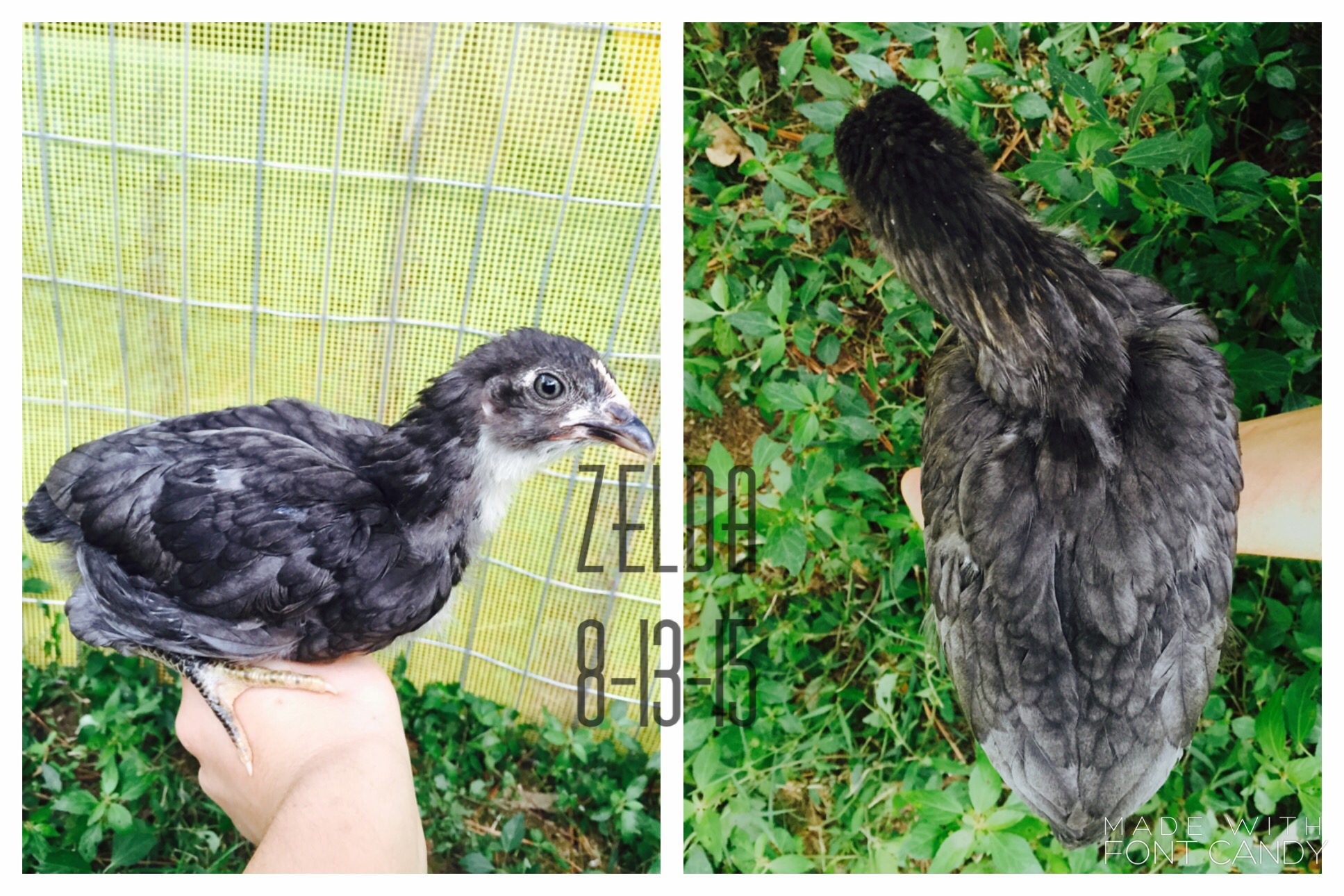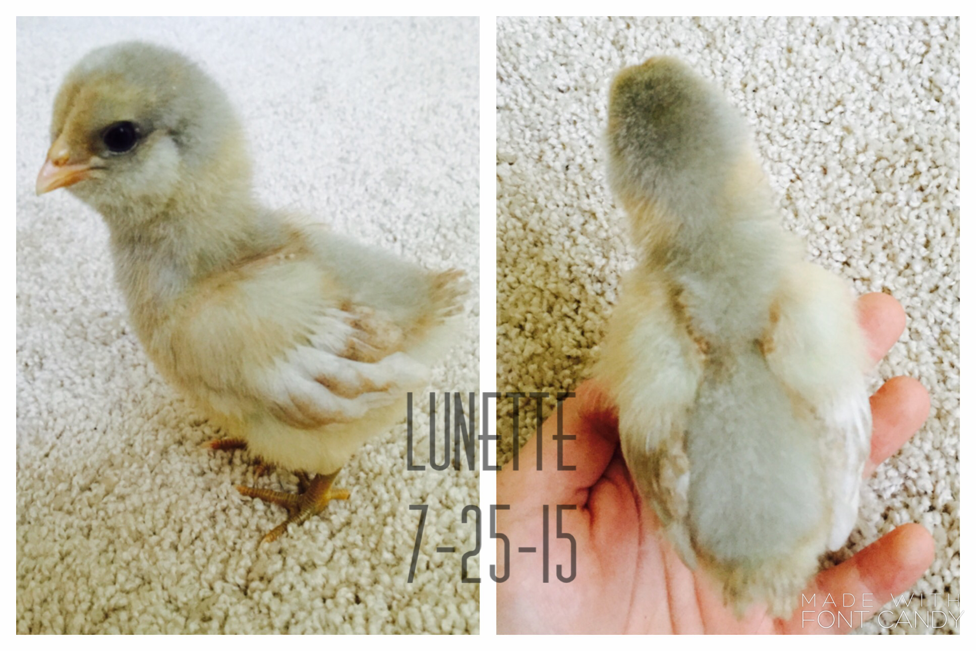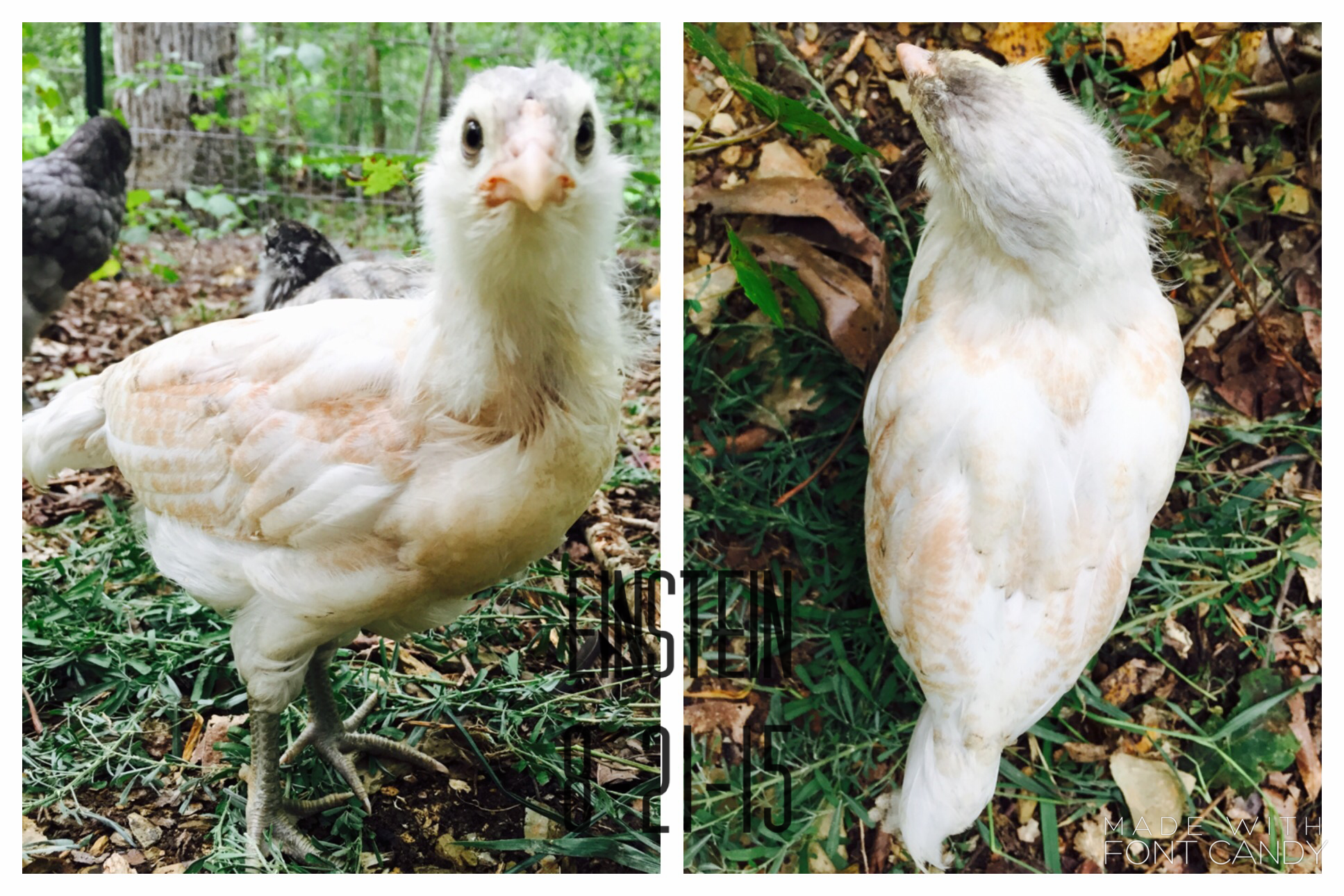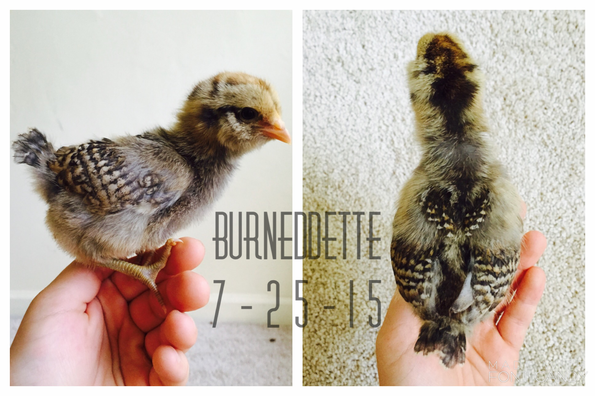 Alright I'll get to it then!: I bought 9 of my chicks from the cackle hatchery, and three I bought from "Awesome Chicken Lady" (that's the contact name on my phone, she's a local chicken breeder)..... And I named ALL of them. As any chicken parent should