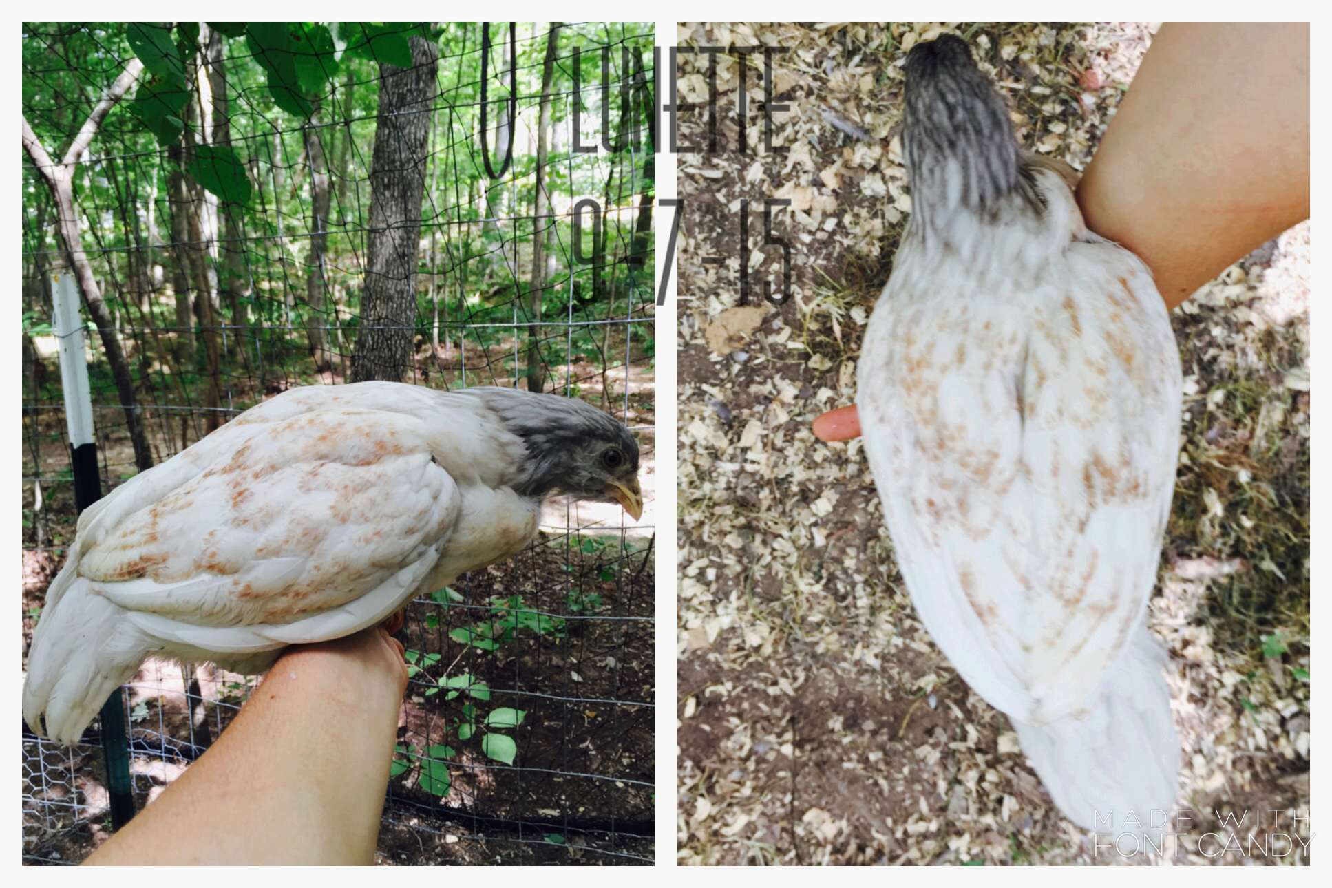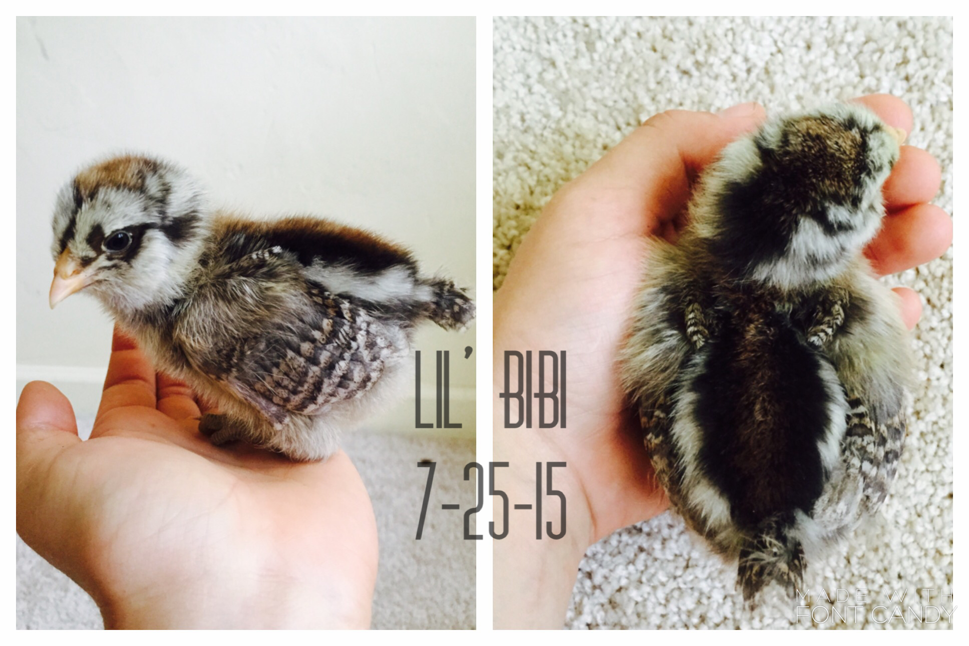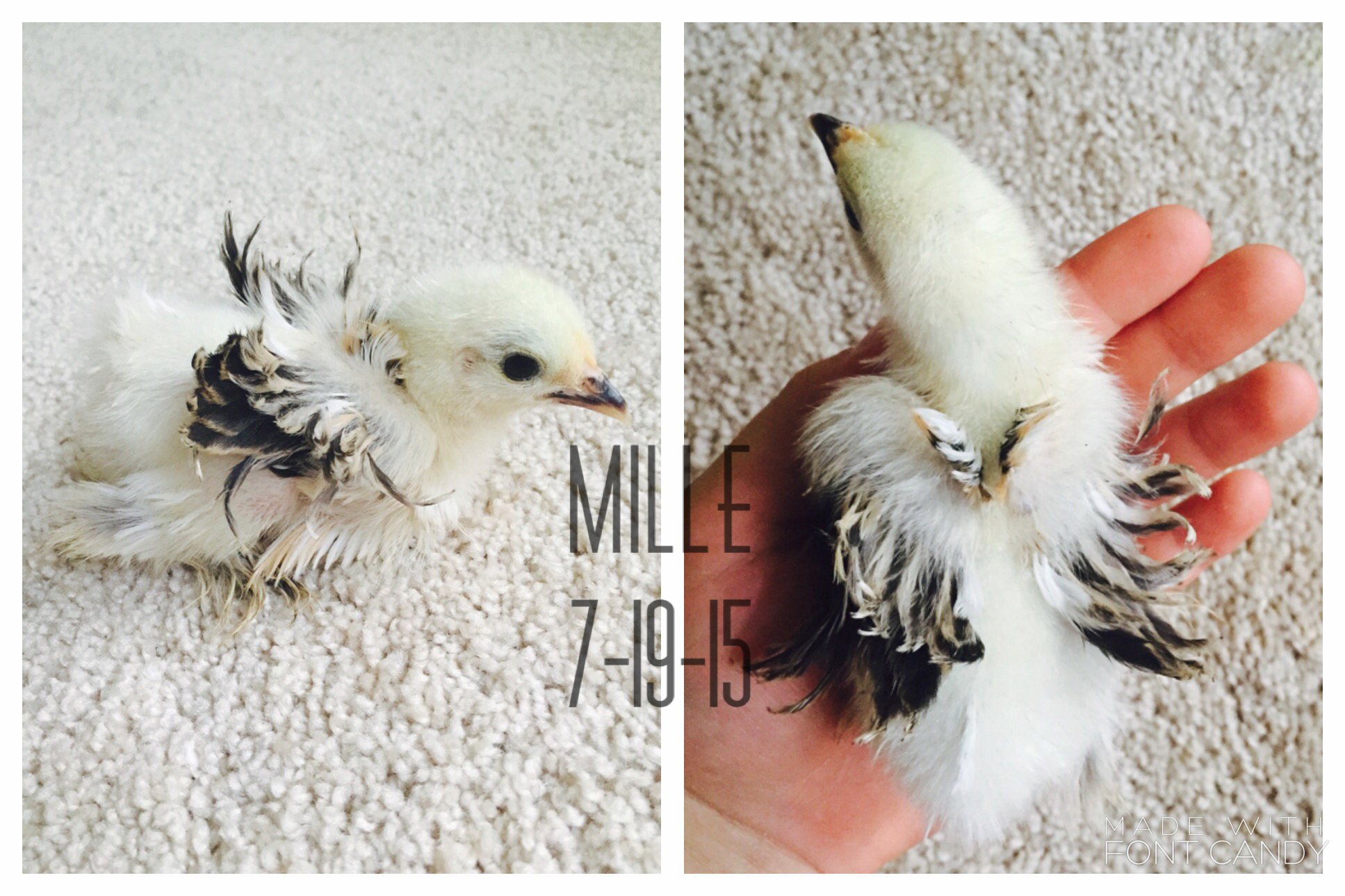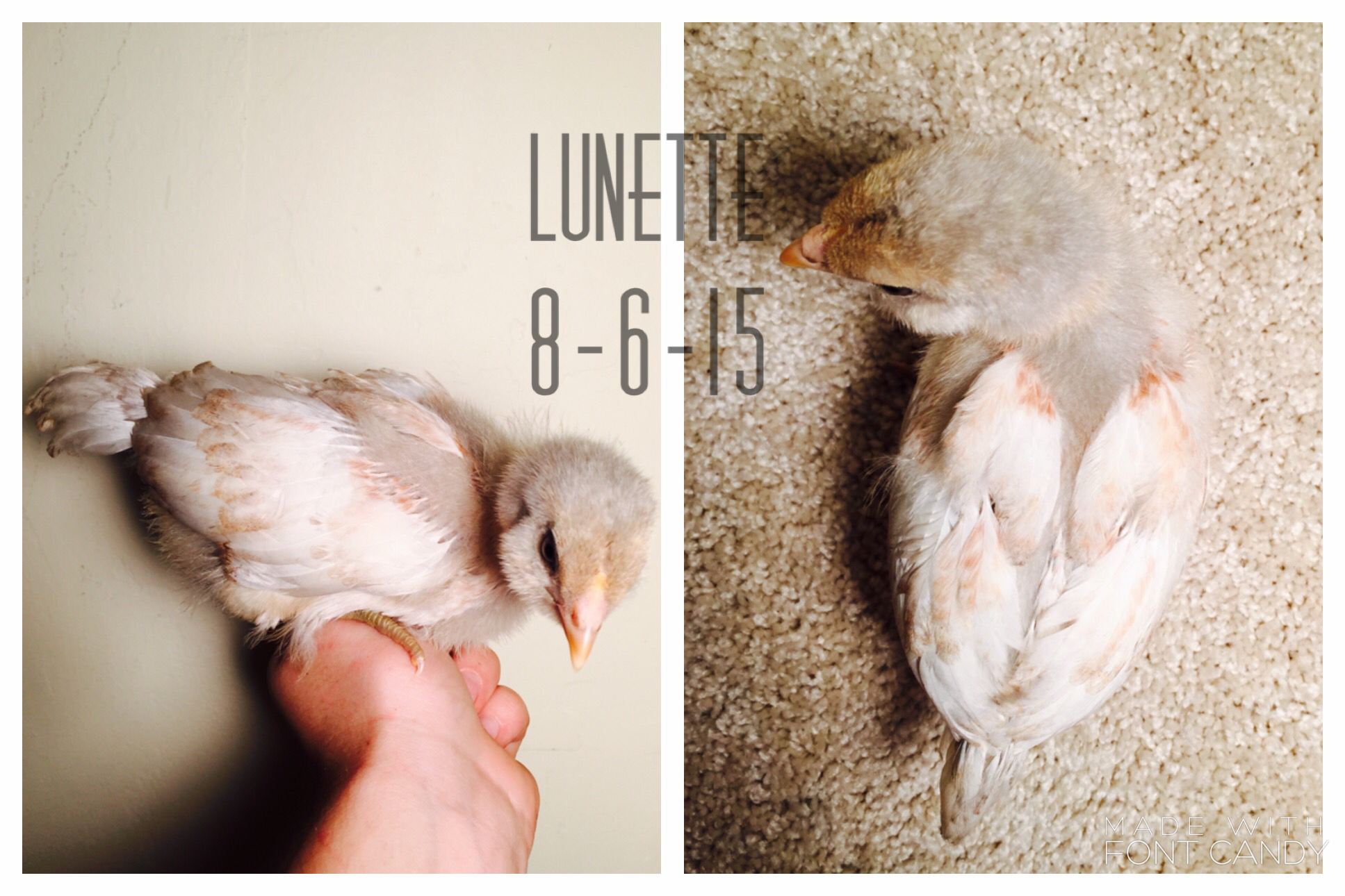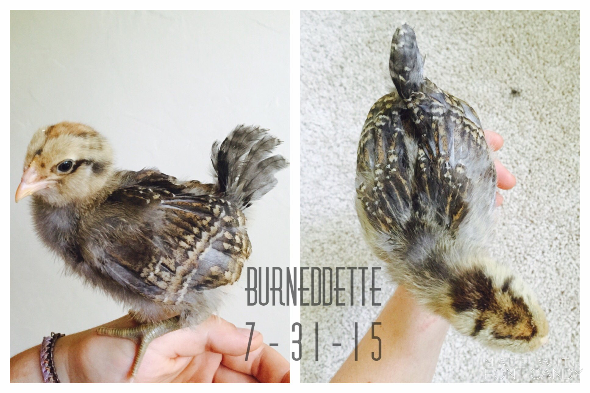 Alright I'll get to it then!: I bought 9 of my chicks from the cackle hatchery, and three I bought from "Awesome Chicken Lady" (that's the contact name on my phone, she's a local chicken breeder)..... And I named ALL of them. As any chicken parent should
