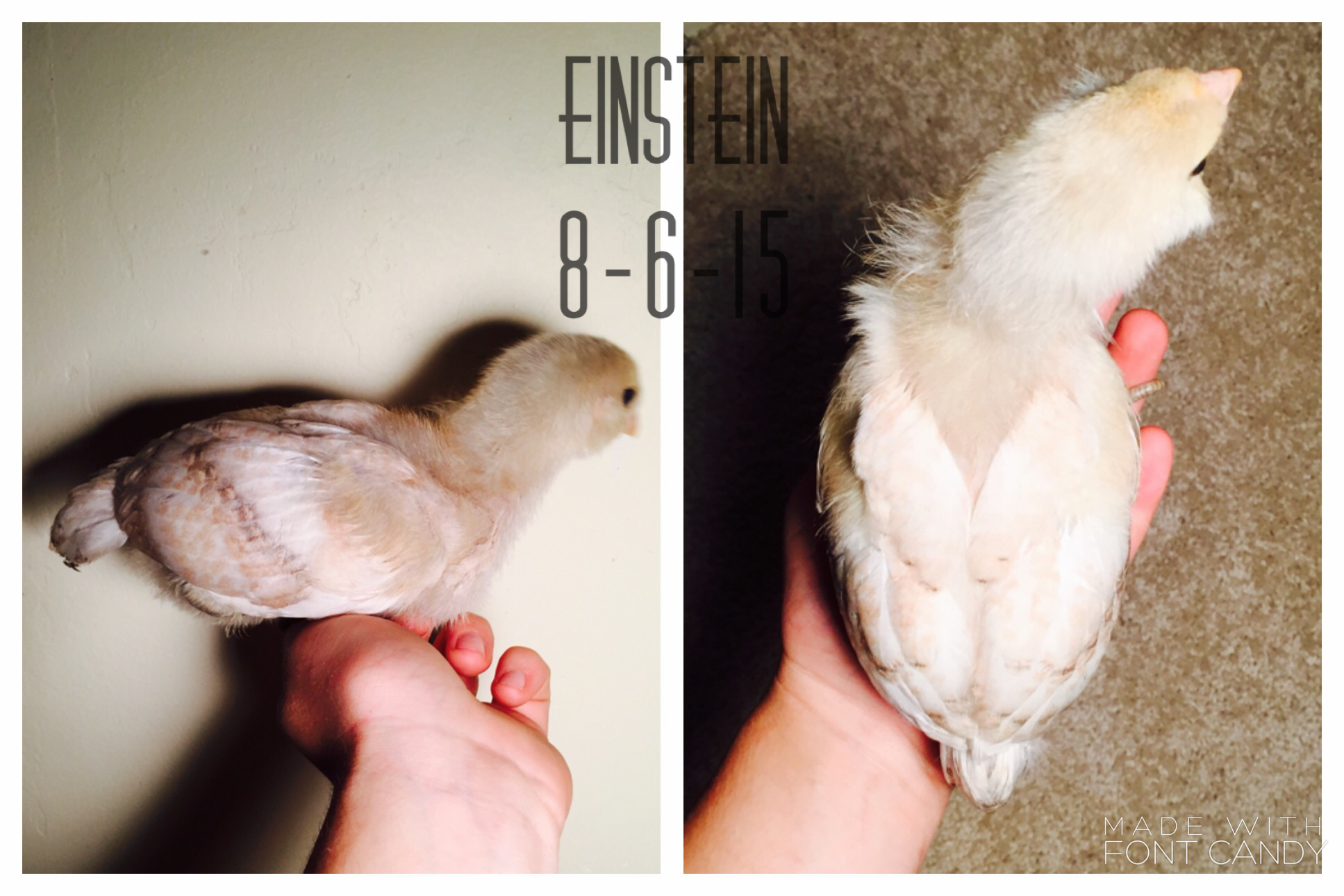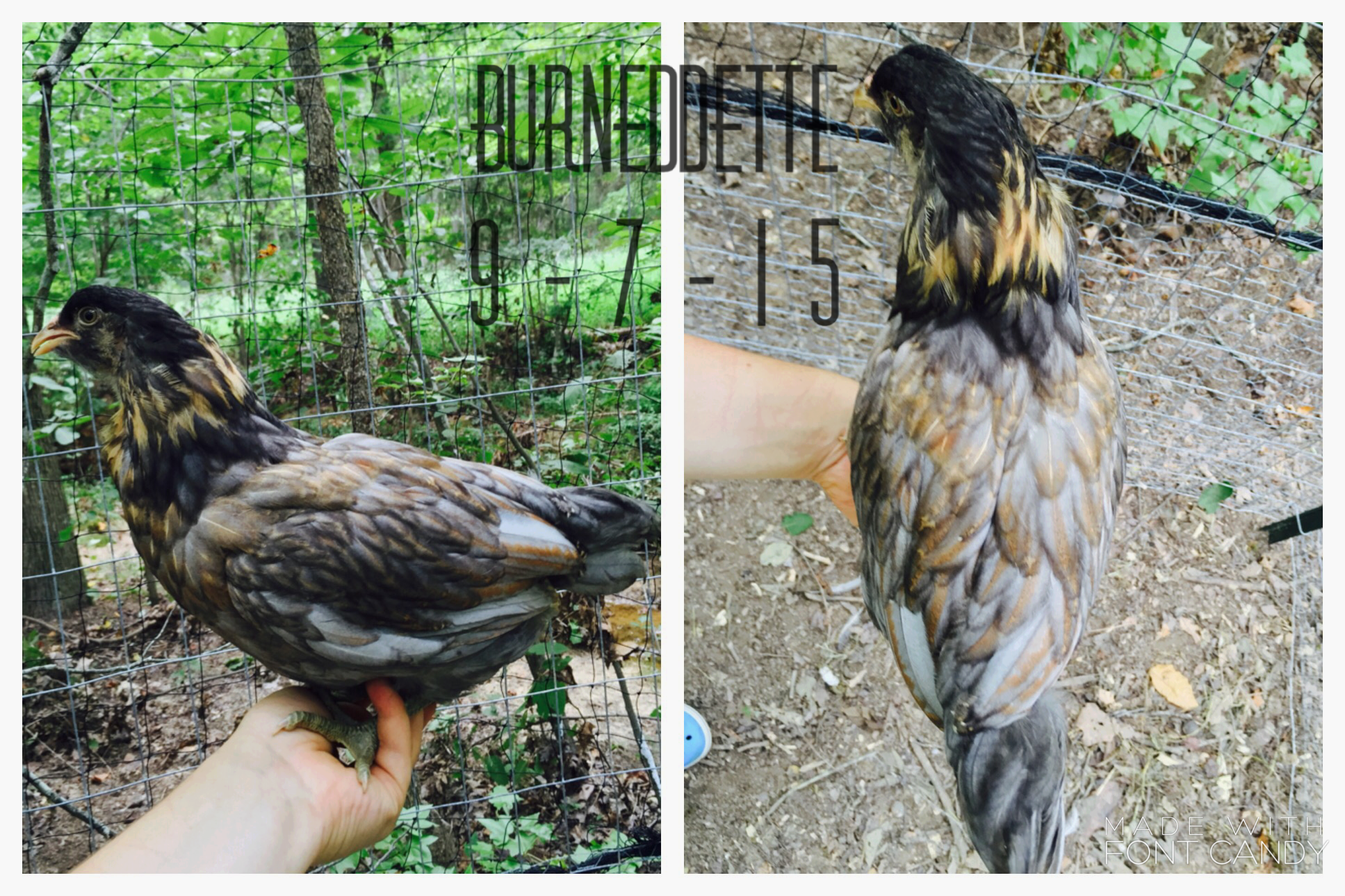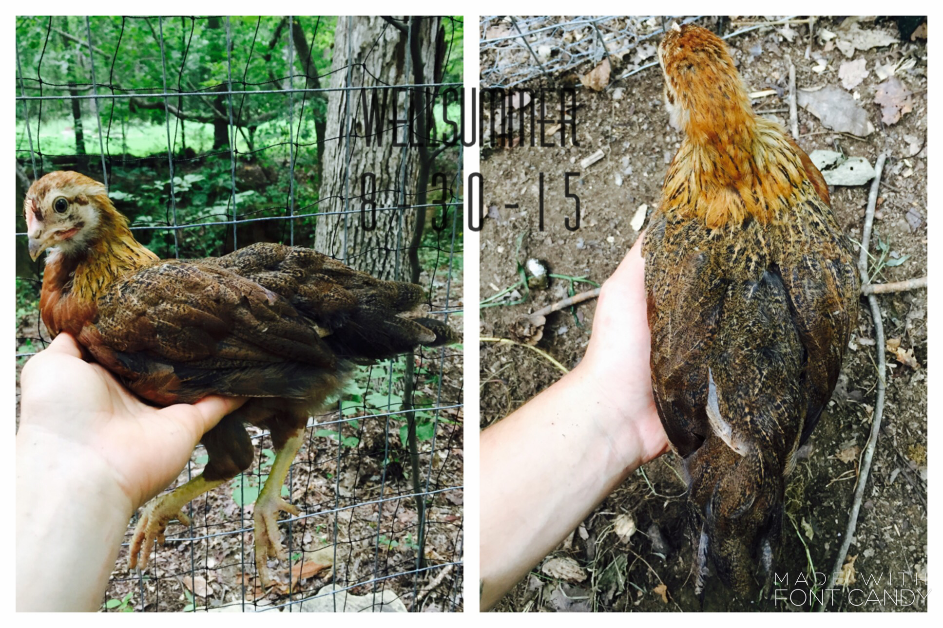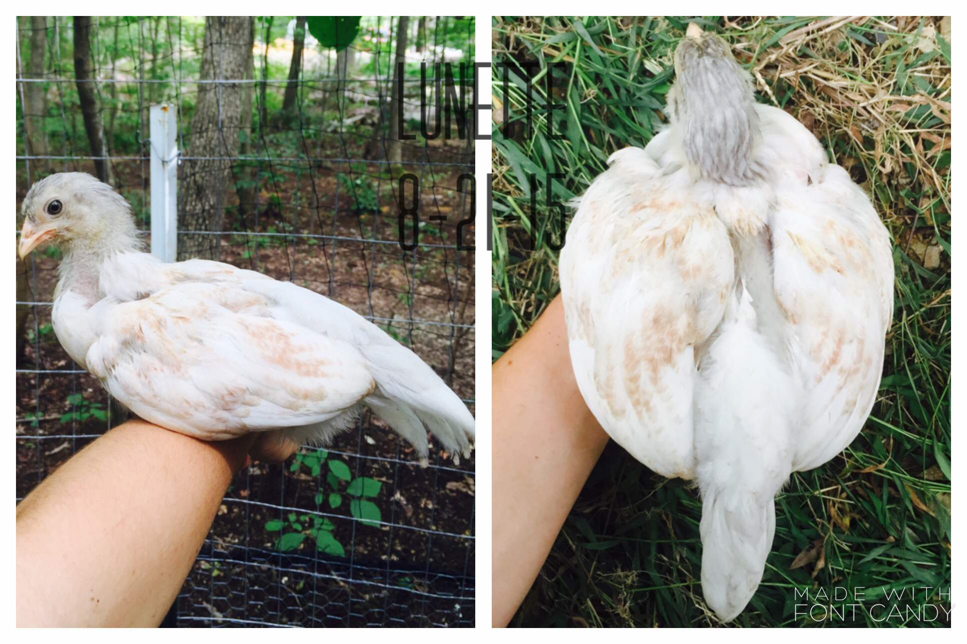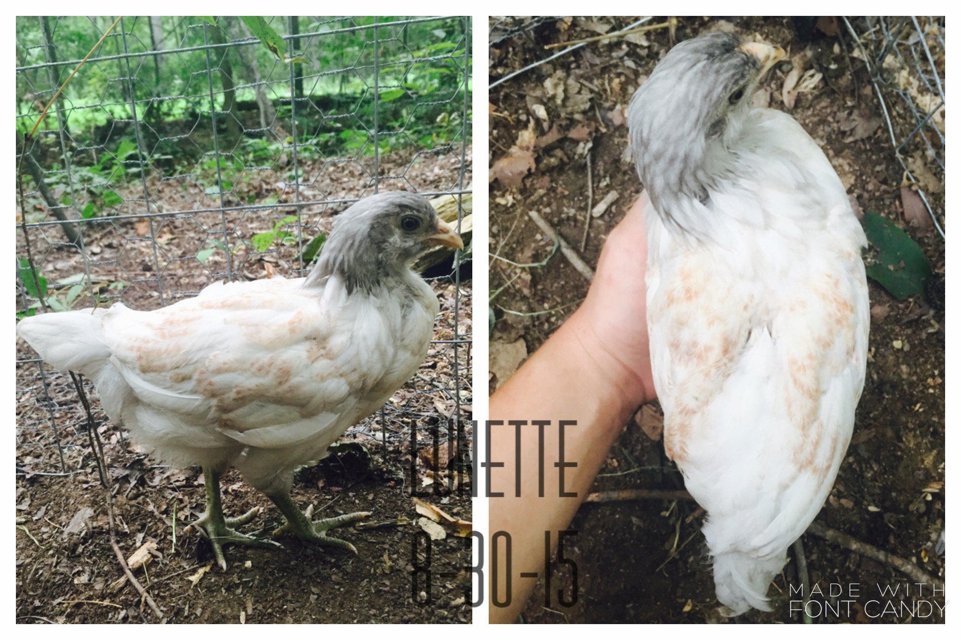 My reason for this is because I bought 5 Easter Eggers and I was dying to know what they looked like when they grew up: so I scoured the internet trying to find any sort of hint as to what they could be like. I did find one thread on BYC, but it wasn't enough to satisfy my curiosity ;P. I thought it would be cool to post my time-lapse for those curious and impatient people like myself. I tried to take pictures every week or so but towards the end the change was near complete so I wasn't too strict with it.