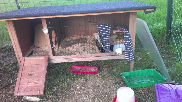 Here is a pic - please excuse the mess I was just trying to get her sorted out and had blocked off the original nest on the left after I moved her - is now all tidy with the waterer in the left hand nest area and the curtains up properly to stop the sun being too hot on her in the afternoons.