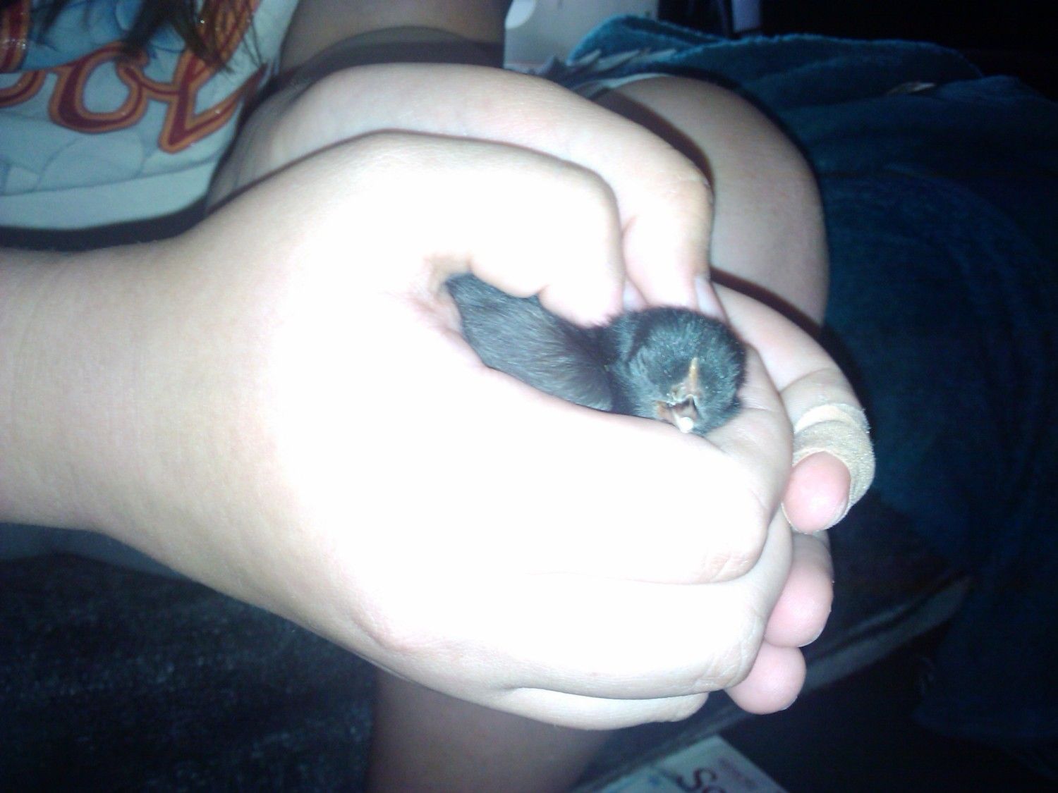 Sad to report that this little one didn't make it - died at a week and half old. It was such a little runt for a Giant Langshan, it was only @ the size of a tiny bantam, altough its wing feather started grwoing it never got any bigger in size. I was very saddened because I so wanted it to make it. Yes, I shed a tear or two