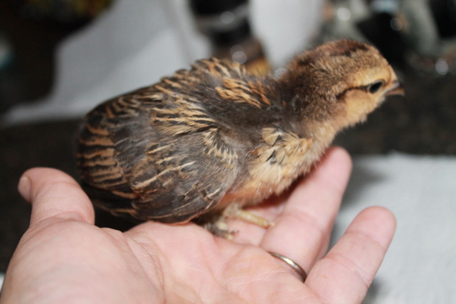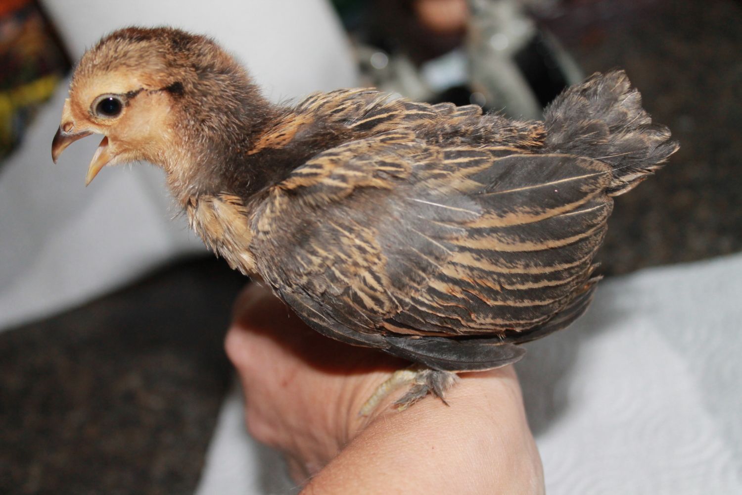 We won an auction on Ebay and the lady had bantam Serama,d'uccle,cochin,silkie,frizzle, eggs...we hatched them and love all the little suprises...however wanna know what they are in order to know where we should place them ....and this one is so little and this color is on another bird that is bigger and maybe furrier...ALL these babies have furry feet... some alot some a little...HELP! HEre are some pics.