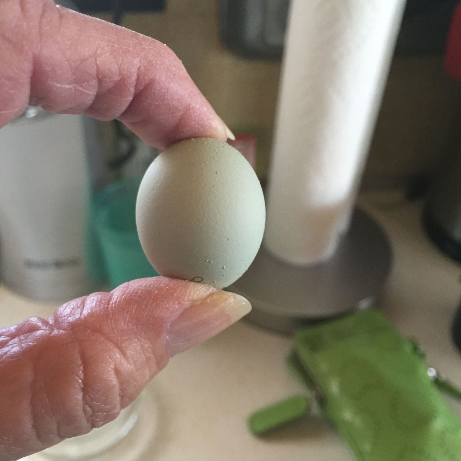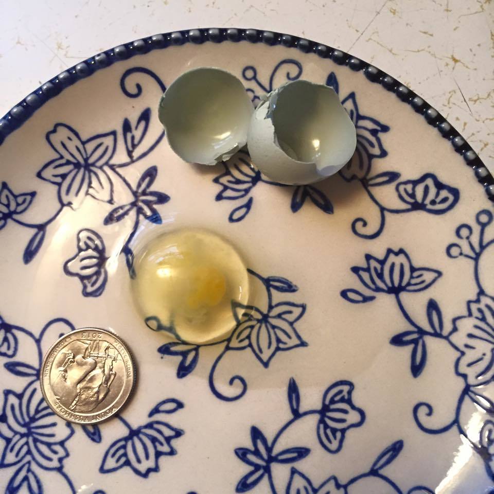 My chickens have been laying for a couple of months now. They lay pretty nice sized eggs, about the size of small store bought eggs and recently a few larger ones. Today we found this wee little thing. Isn't it cute? Just thought I whould share with my fellow chicken lovers.