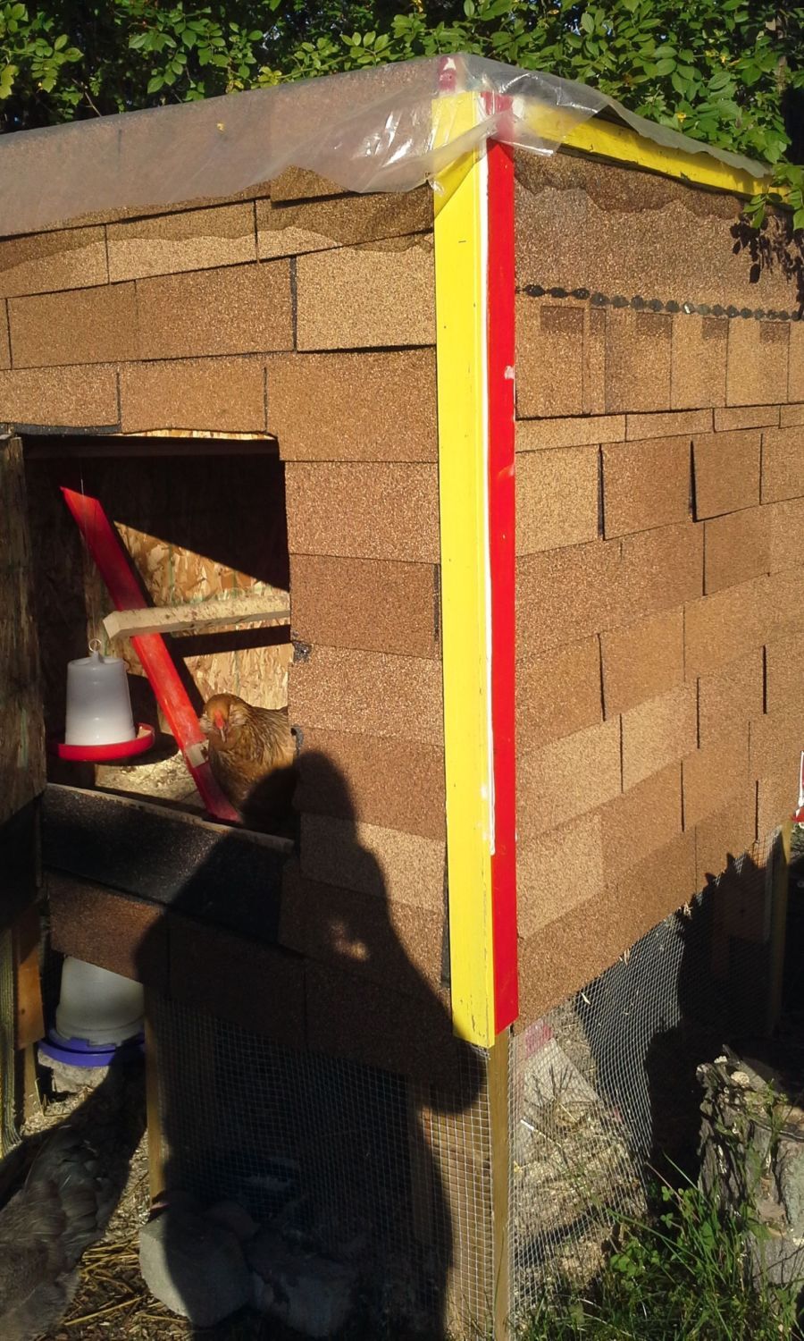 Anyway, any ideas on how to improve our make-shift chicken shack? Maybe an outside eggbox access door or should I add insulation in some form? Maybe take the tarp off (although I kind of like the ramshackle look and it prevents any future leaks). Cut another window in the blank side that faces the sun? Any suggestions or comments would be welcome. Thanks!