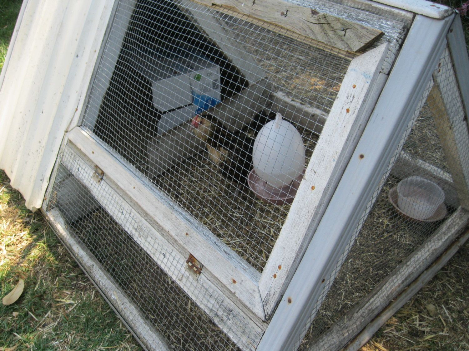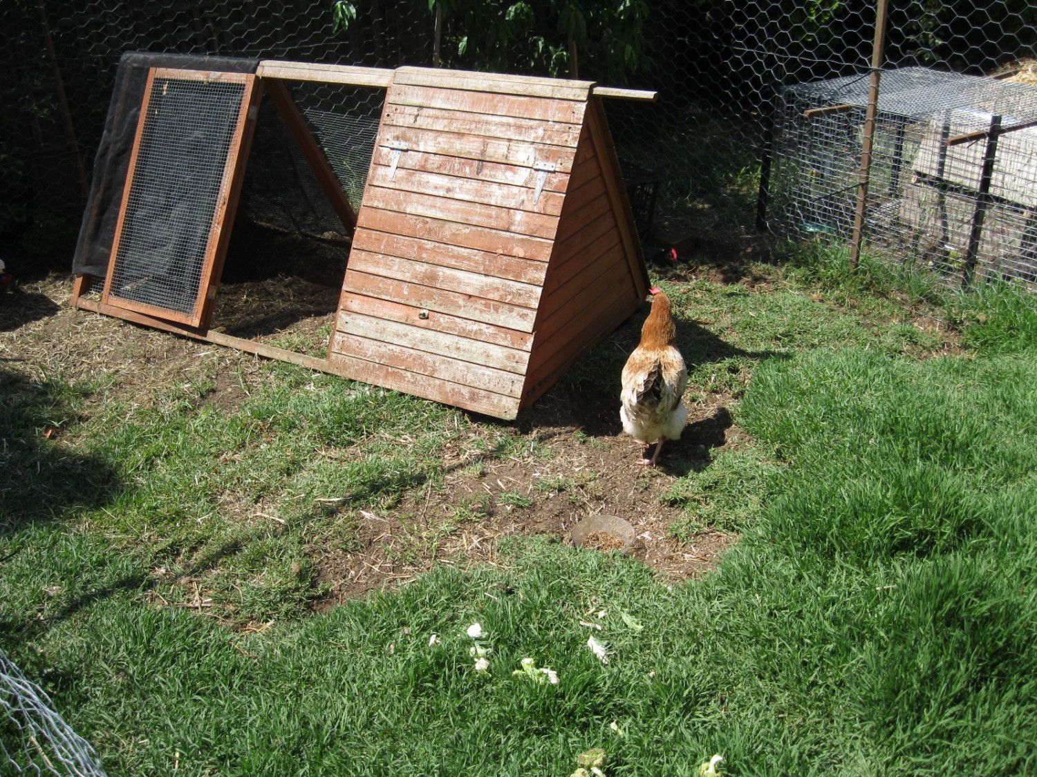 The coop is just a cheap kit chicken tractor I bought, it consists of a open section and the coop which has a roost and also doubles as a nesting box. I always leave the door open to the tractor and the coop even at night, predators aren't a problem here. They usually prefer to roost on top of the tractor, quite often I force them into the coop by putting them in the chicken tractor and closing the door. If I forget to open it before I fall asleep then there's a good chance of being woken up by squawking the next morning.