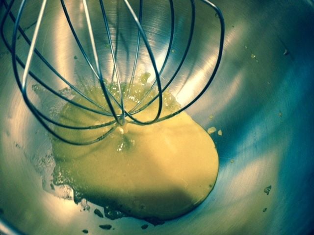 Separate the eggs. With an electric mixture, blend the sugar and egg yolks until creamy.