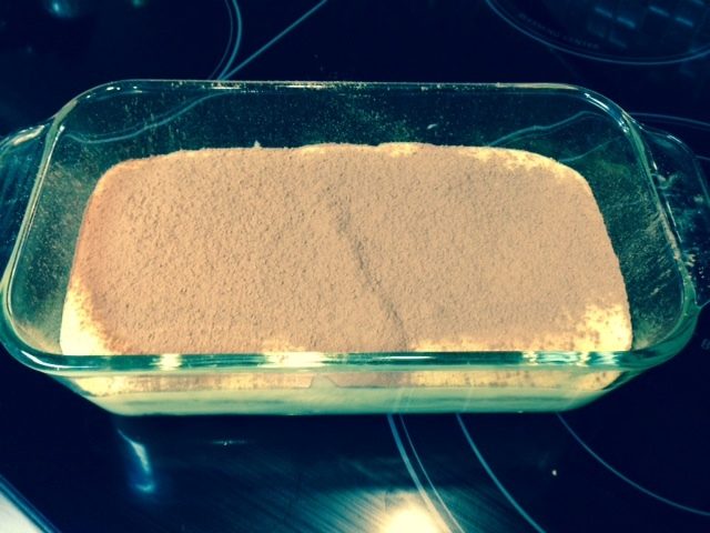 Chill for a couple hours. Sprinkle cocoa powder on top before serving.