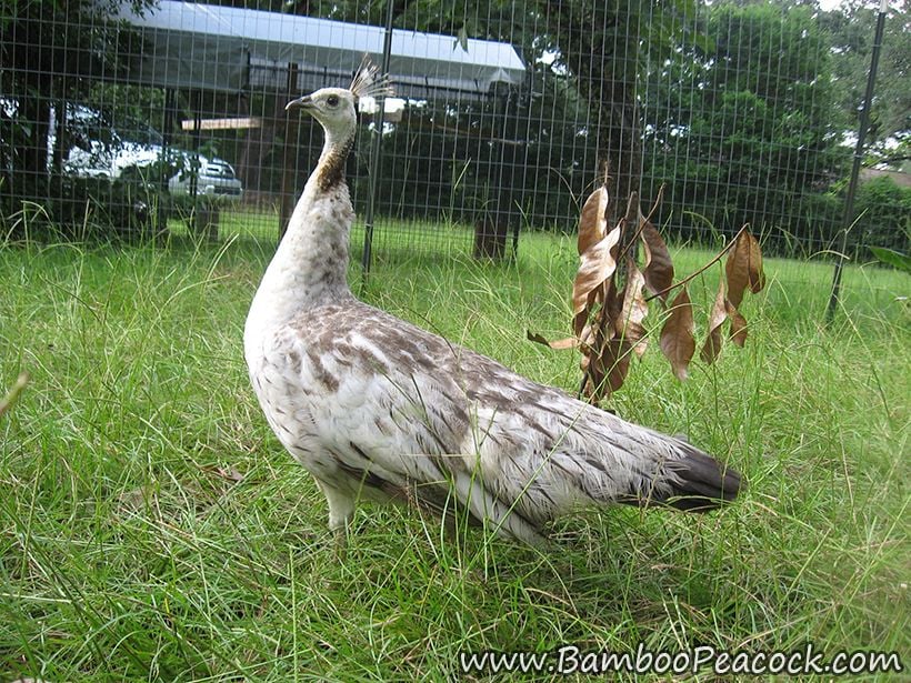 Free-ranging is wonderful. It is fun watching the peafowl fly up into a big tree for the night and fly down at around 5 in the morning. The best part is watching them fly down. I never got to free-range for long because my peafowl ran off. I would definitely keep them in as long as KsKingBee said. I kept my first pair in for a month and that certainly must have not been long enough or they got too curious and crossed the road and kept going! I got the peahen pictured above back, but the peacock was long gone. Something to think about is the breeding season. It is pretty to see the peacock displaying out in your yard, but once it is time for the peahen to lay eggs, she might wander off to go make a hidden nest somewhere. During this time she can be very vulnerable to predators because once she lays all of her eggs in a nest she will begin sitting on them 24-7. She will get up quickly to drink and eat, but she will quickly return. She will be on the nest for 25-30 days (usually just 25-26) then the eggs will hatch. Many people lose their free-ranging peahens because they get killed on the nest. Not everyone has this problem though...Some people find the nest and make a temporary small pen around the nest and provide the peahen with food and water inside so that she is safe and well cared for while she nests. Hopefully she would find a safe spot. I read an old story once of a lady who has a beautiful garden and got peafowl as a Birthday present. She talked about them picking pretty places to nest such as under a rose bush in bloom, etc. She was lucky that they picked spots in her garden. It seems like peahens like to wander off into the woods sometimes to make their nest. I never got to that point in free-ranging though. I got my peafowl after breeding season and around Christmas they decided to run away. It would be nice to free-range some, but I would just worry about them too much. They are great at hiding.