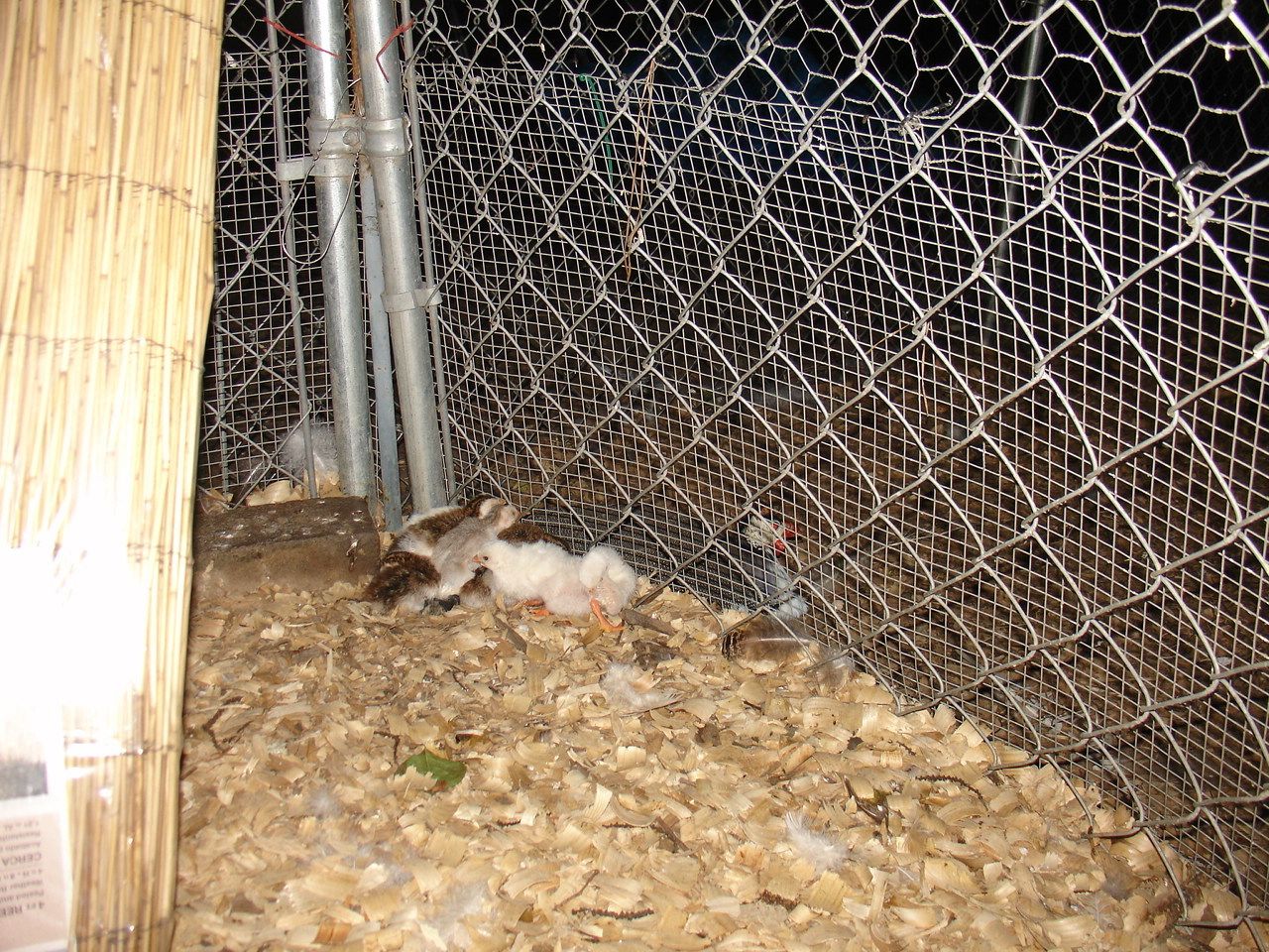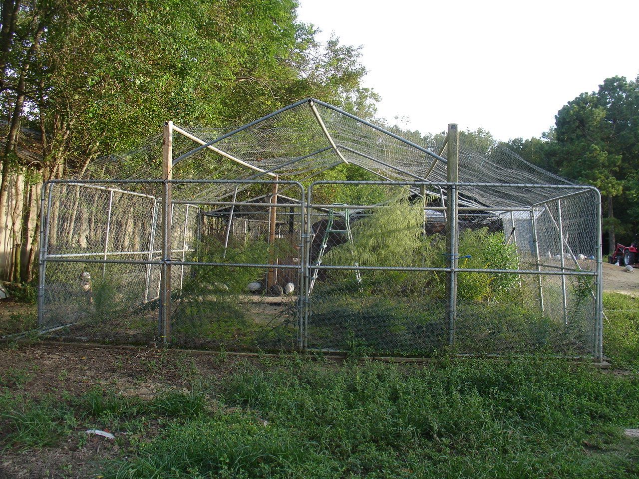 What kind of wire is that on the sides? it looks a bit thin and it is welded not knoted, if you can bend it with your hands a coon or canine can break into it, i use hardware cloth over my chain link pens for the first 32 inches then i cover the rest with chicken wire, this keeps snakes out and a dog or coon is not able to grab the inter links and tear them apart