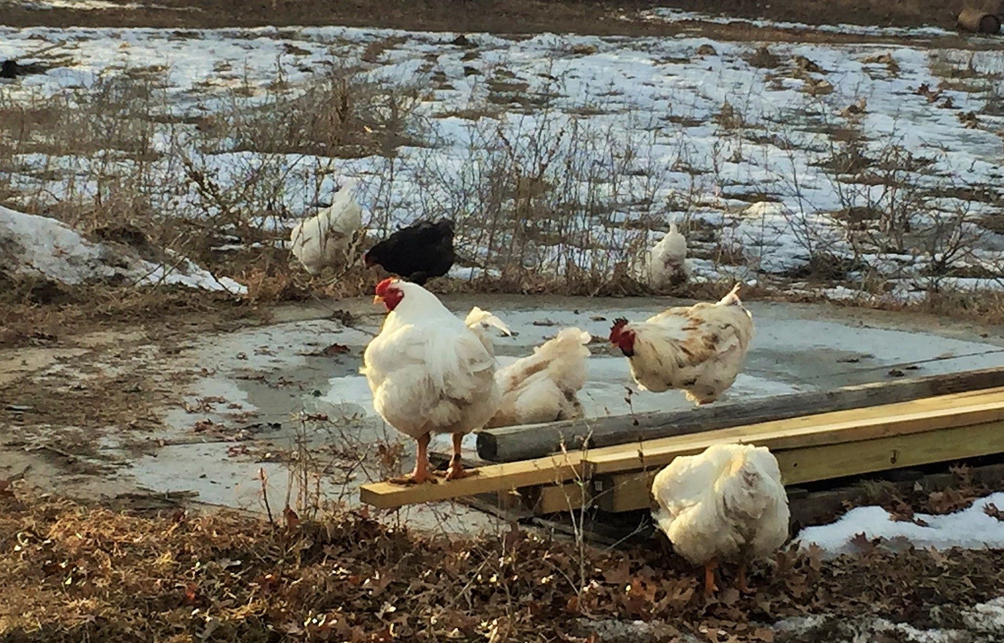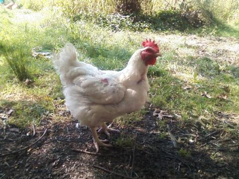 She slept on the floor of the coop on a bar on the ground rather than up on roosts with the other birds, she ran with my whole flock with great gusto. and she was my favorite. I was really sad to have lost her.