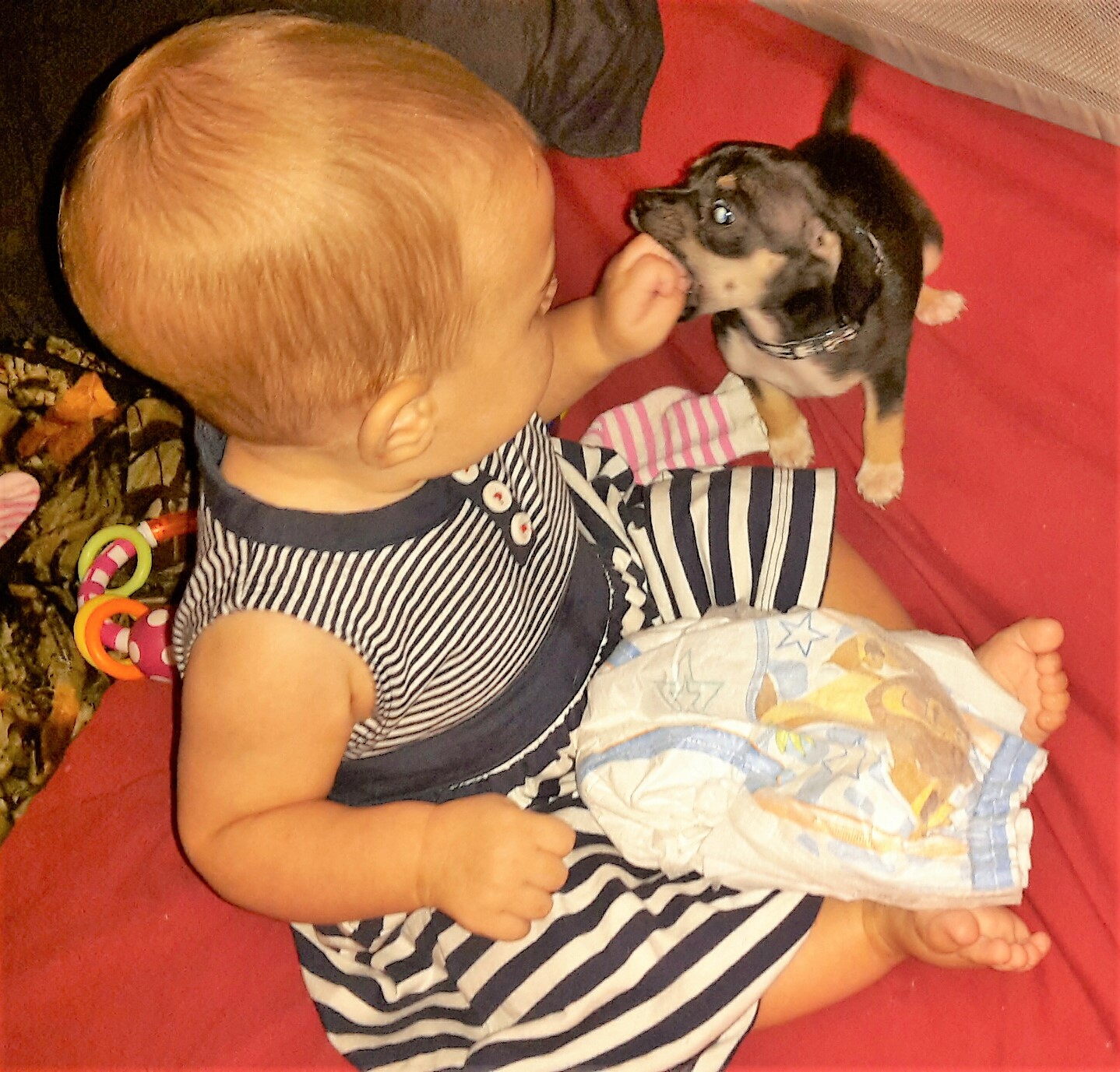 Did I post the picture of Duckling rubbing the dog's stomach this morning? If so, sorry!