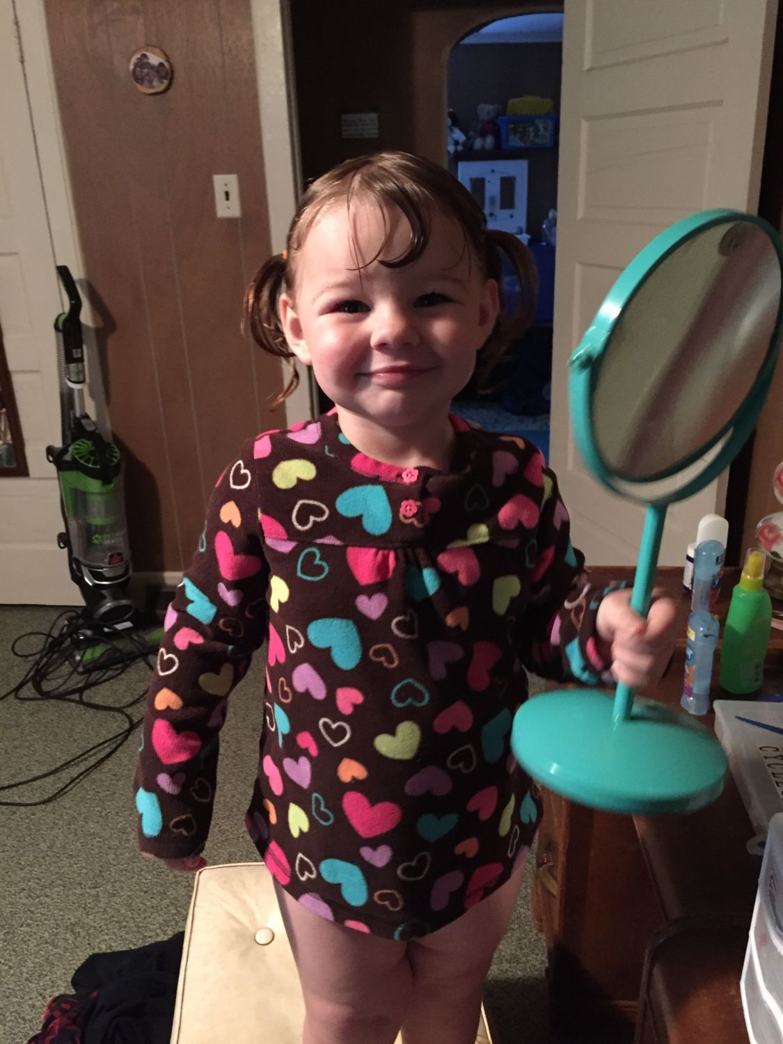 well, isn't she such a sweet thing!Ouch!So... funny story. I woke up and had one eye open. My toddler was staring at me, and said two eyes! then hit me in the open eye to shut it and said "close eye."