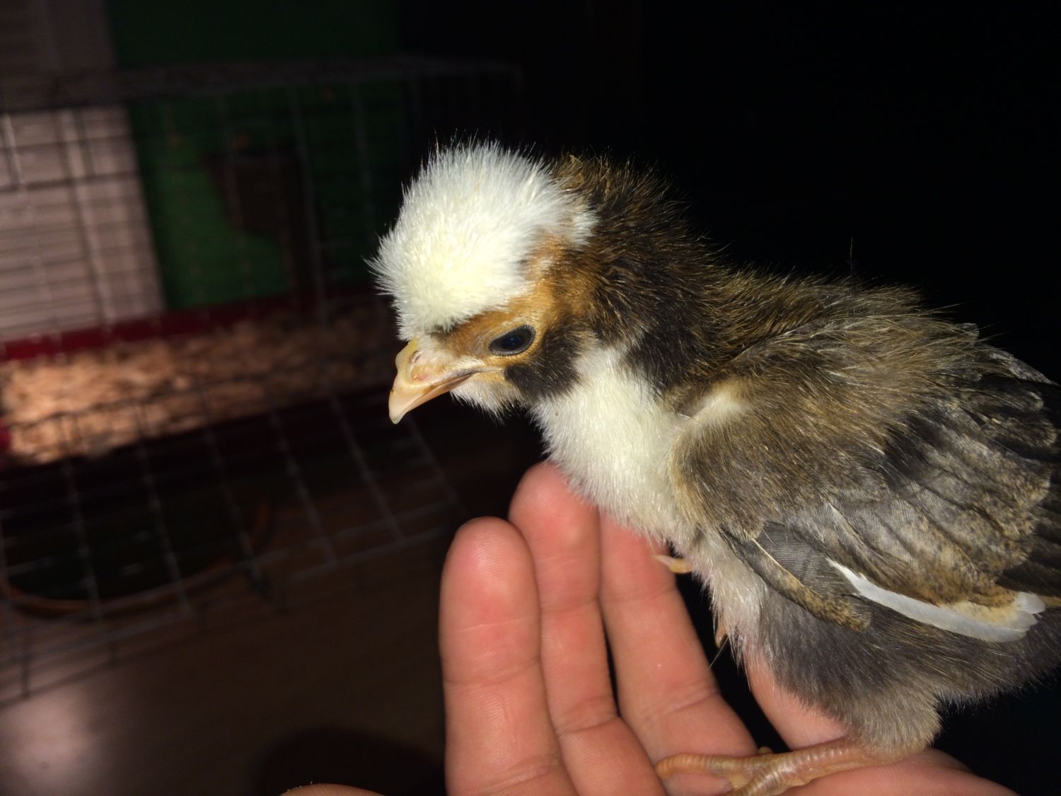 Nov 8, 2015 #1,329 Alex1010 Chirping Joined Oct 8, 2015 Messages 834 Reaction score 64 Points 81 Location North Carolina One Of My Tolbunt Polish Chicks, About 1.5 Week Old Hopefully Next Years Breeders!