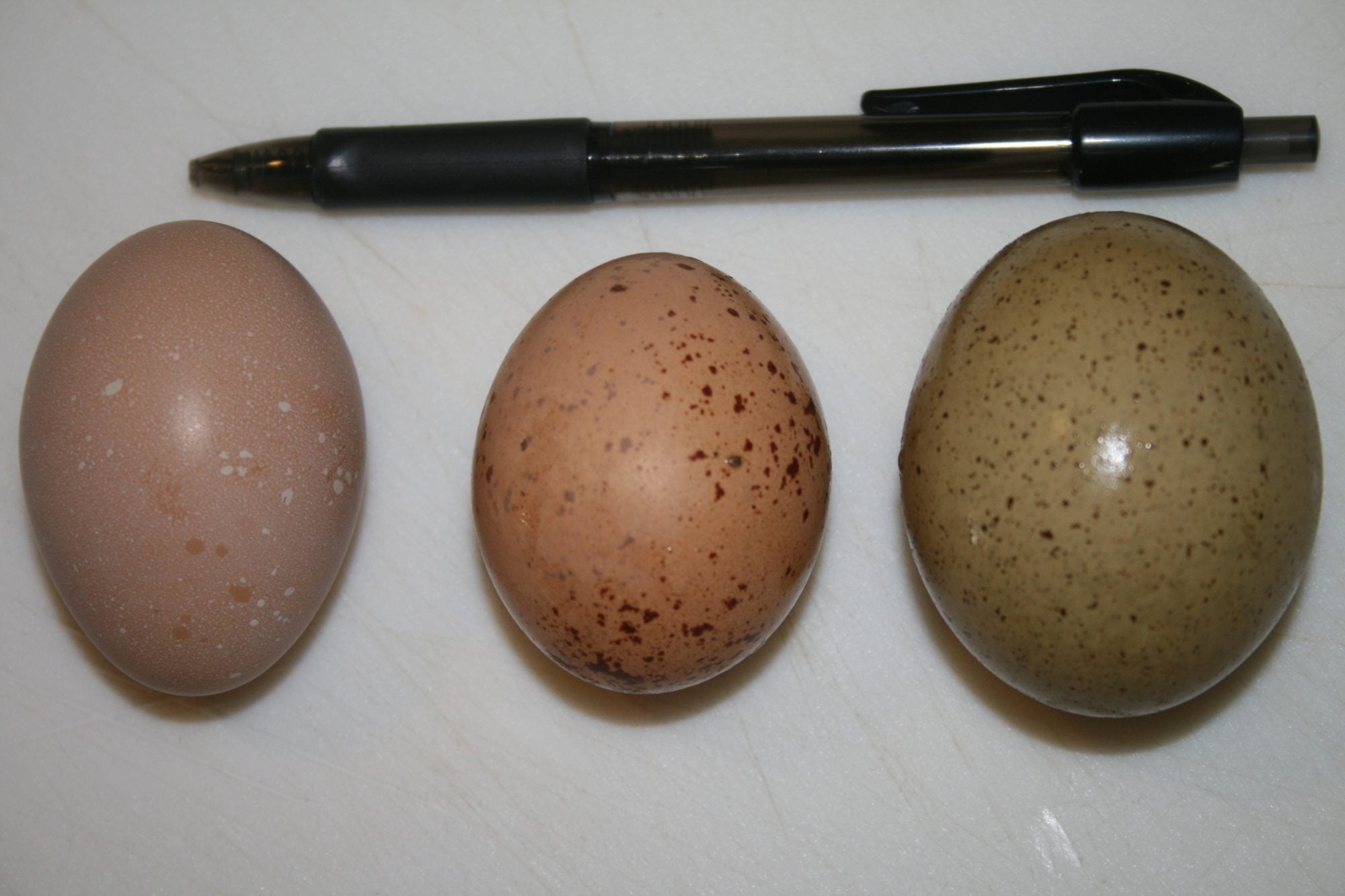 Does it look like this is the result of too much calcium or just how a particular hen's eggs look? One hen always lays the speckled kind on the left. And I think another hen always lays ones that look like the one on the right. I just thought it was a lighter egg, but it looks likes it's just more spotted.