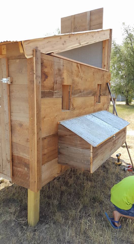 The finished version. I will add another pic showing where we added the eave and a small "flop-down" thingy (very technical) to block out wind and snow.
