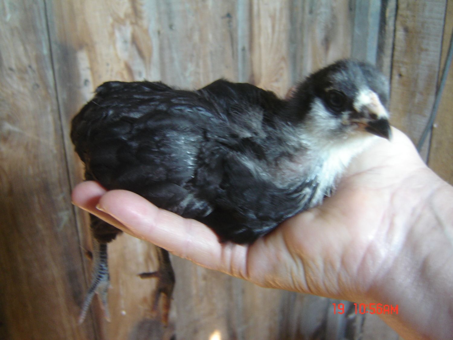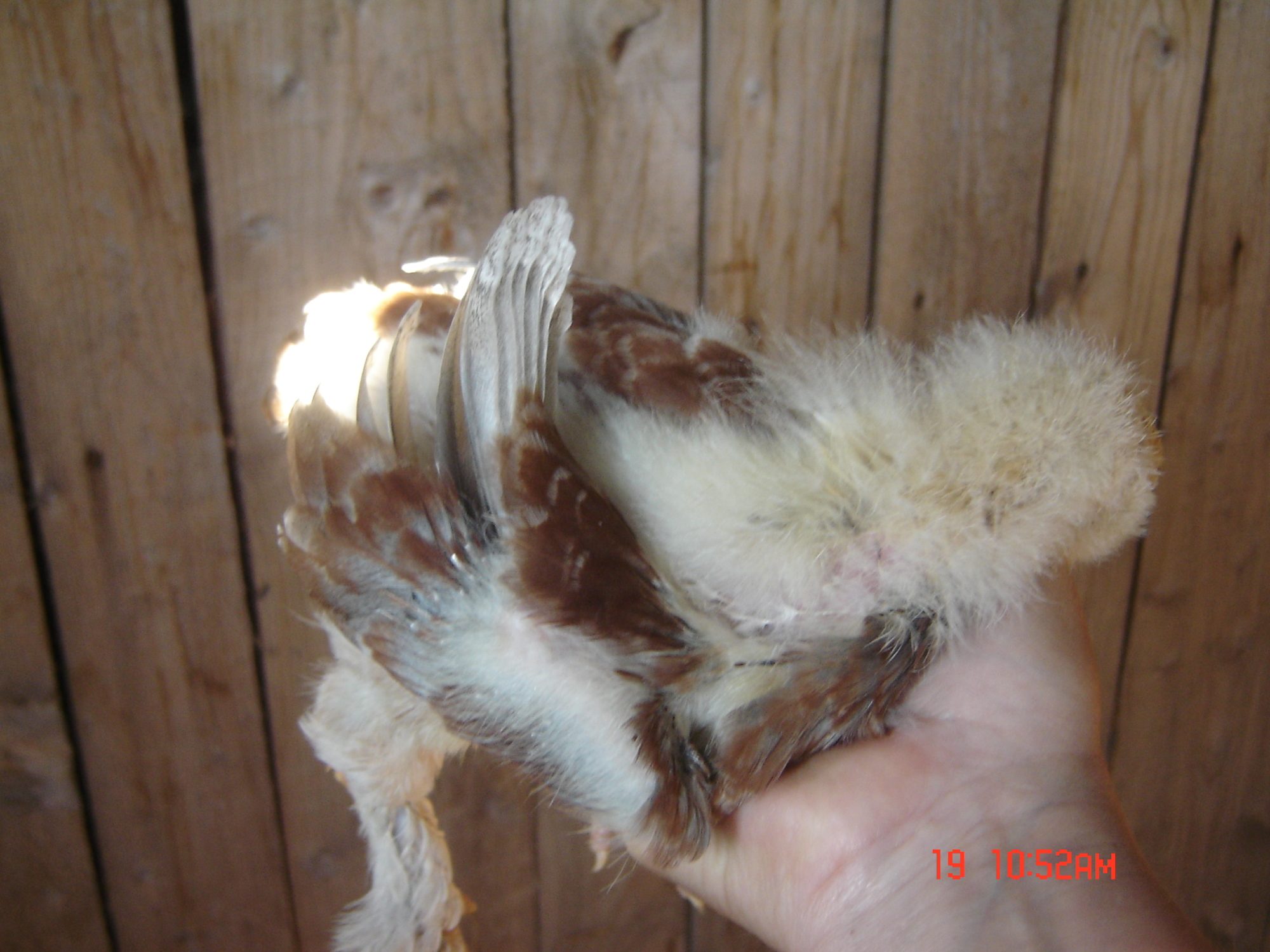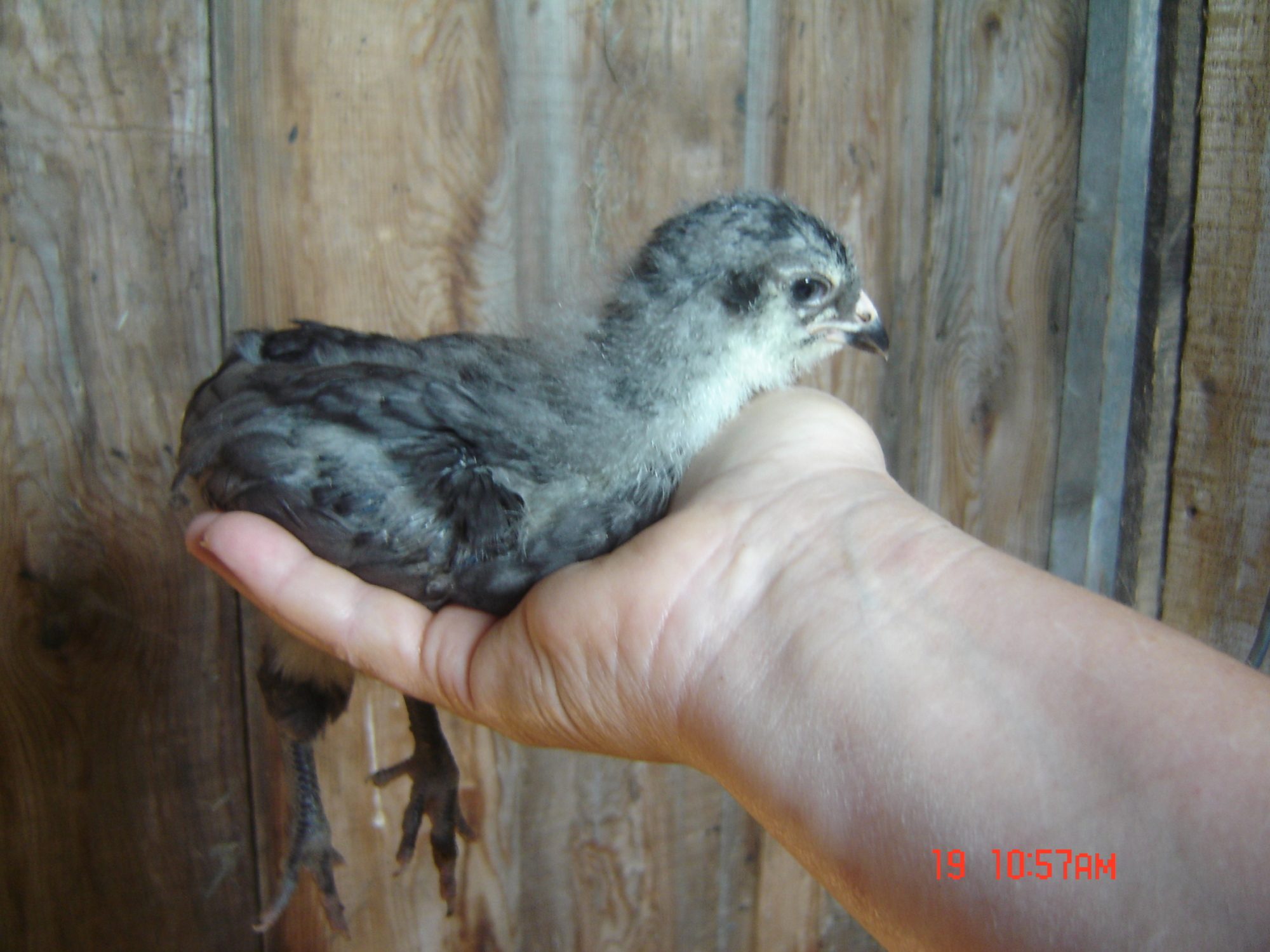 Little Salmon Faverolle chick, 3 weeks old, they are very difficult to catch and they are always trying to get away.
