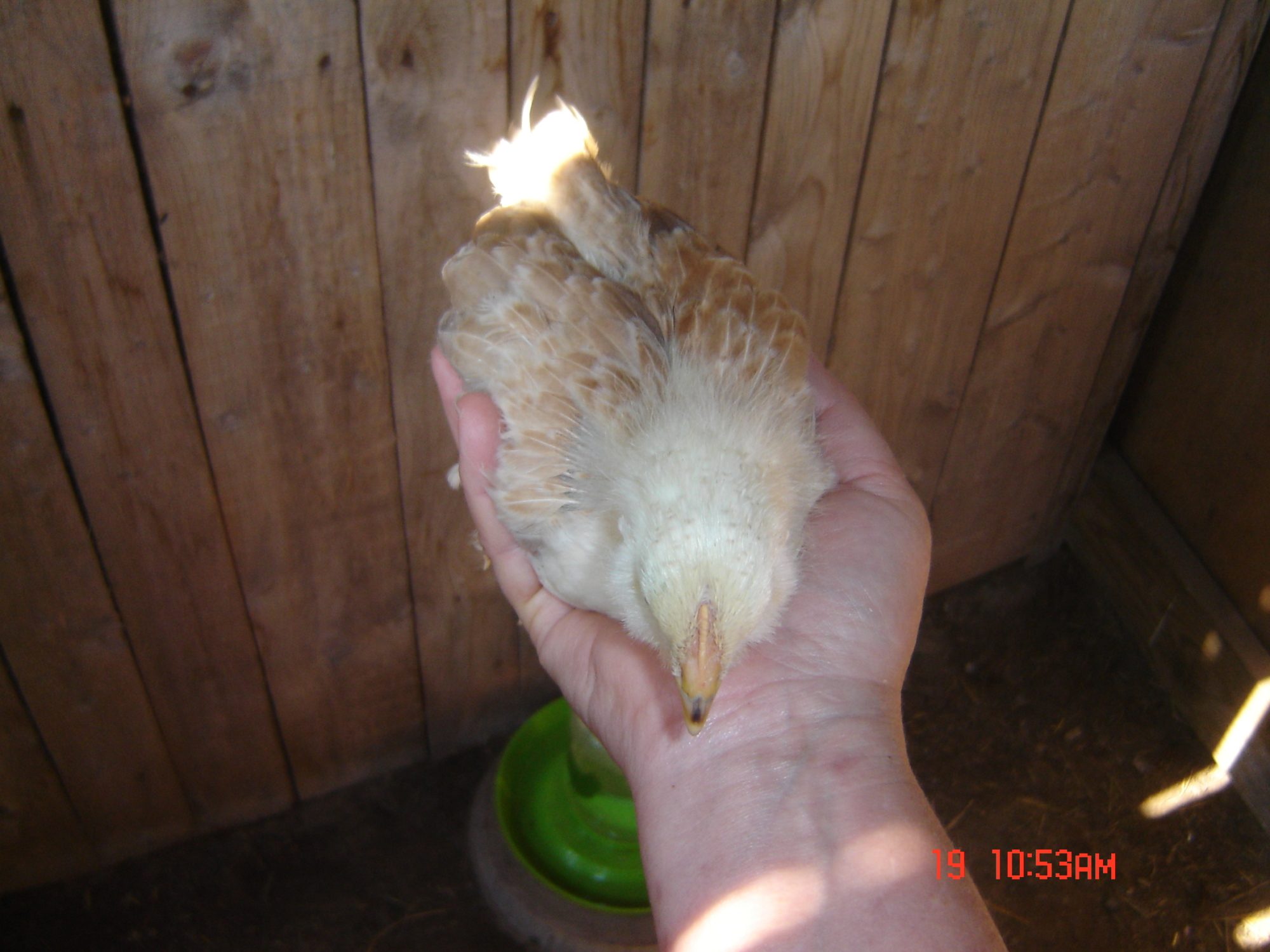 Go figure! The SF's are just skittish, except for one little pullet that is beginning to become a little more tame at 5 weeks old.