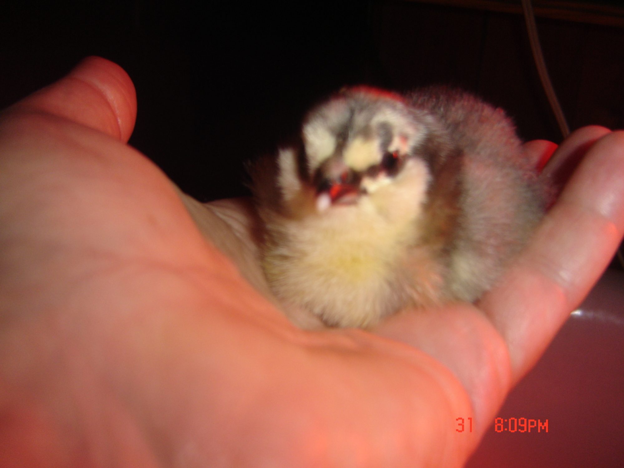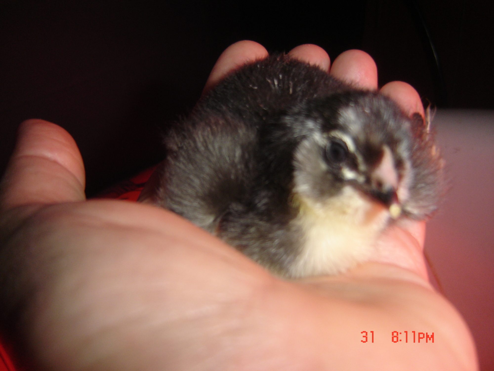 However the Ameraucanas are most Awesome. I can reach down and pet them, scoop them into the palm of my hand (everyone is 6 weeks old at this point) and carry them around. I birng them one at time into the house to laze around on top of me and doze while i watch TV for a long while.